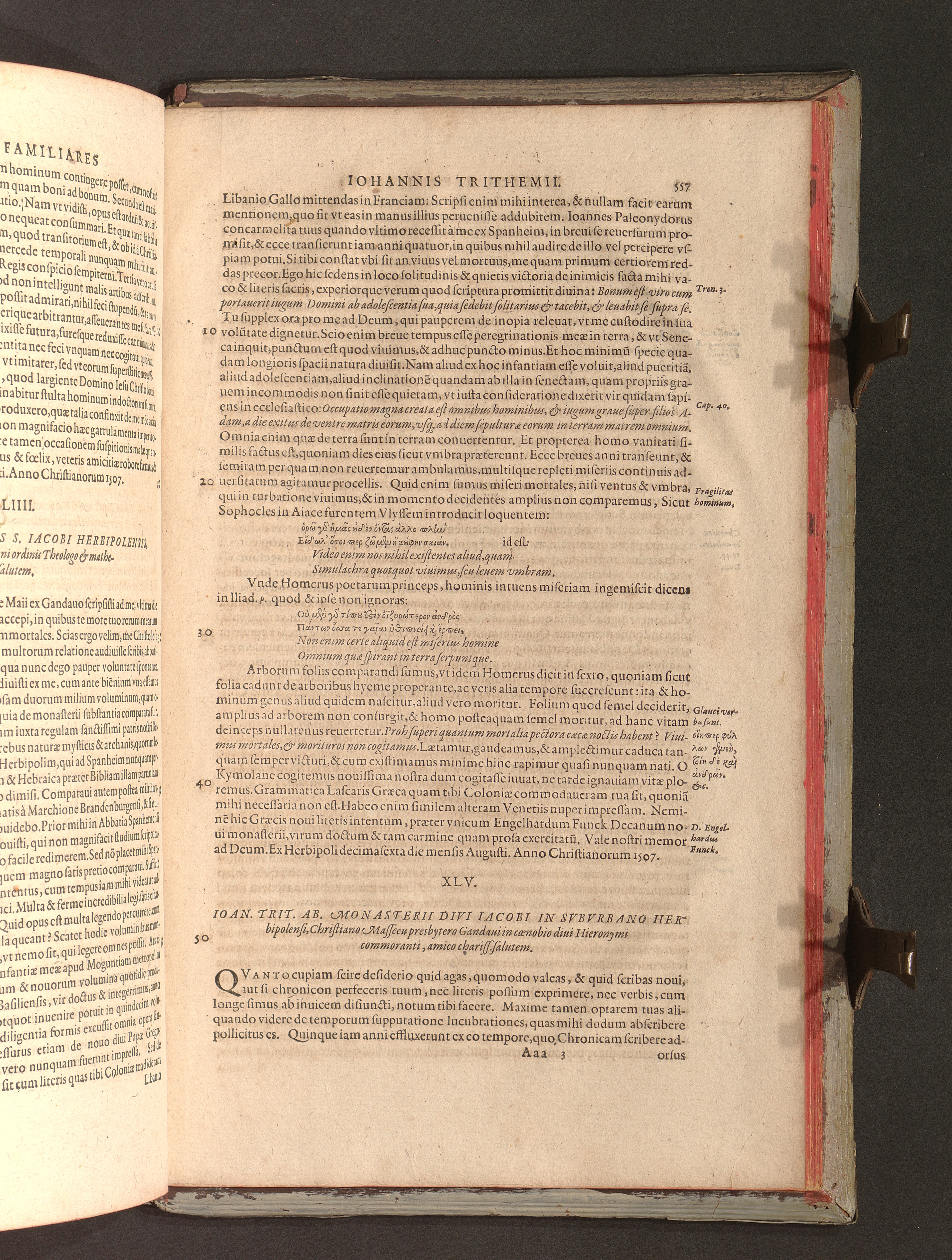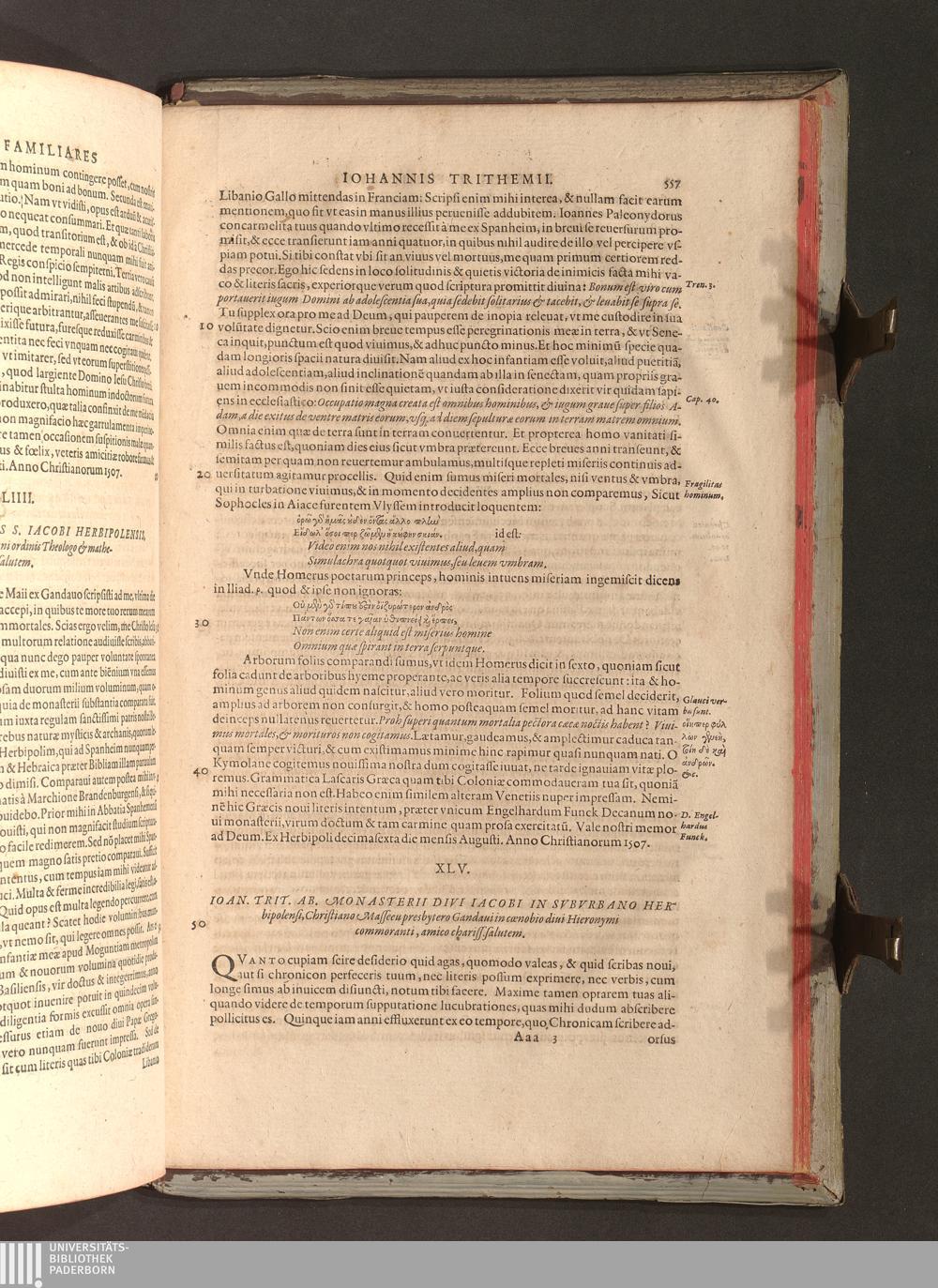 2 (1601) Iohannis Trithemii Spanheimensis Primo, Deinde D. Iacobi Maioris Apvd Herbipolin Abbatis, viri suo æuo doctissimi Secvndæ Partis Chronica Insignia Dvo : I. Coenobii Hirsavgiensis, Diœcesis Spirensis: eius fundationem & progressum ab Anno Christi DCCCXXX. vsque ad Annum MCCCLXX. II. Coenobii Spanheimensis, Diœcesis Moguntinensis: eius fundationem & progressum ab Anno Christi MCXXIIII. vsque ad Annum MDXXVI. vel potius res ab octo illis sæculis in tota Ecclesia & Imperio memorabiliter gestas, complectens; Qvorvm Privs Collatione Archetypi Ipsivs Auctoris manuscripti correctius & plenius; posterius verò istud nunc primùm è tenebris erutum, ob insignem vtilitatem optimâ fide in lucem editur; Accedunt Epistolæ eiusdem Familiares, ab excessu eius de cœnobio Spanheimensi ad Principes clarosque viros scriptæ, historiis eius æui referctæ