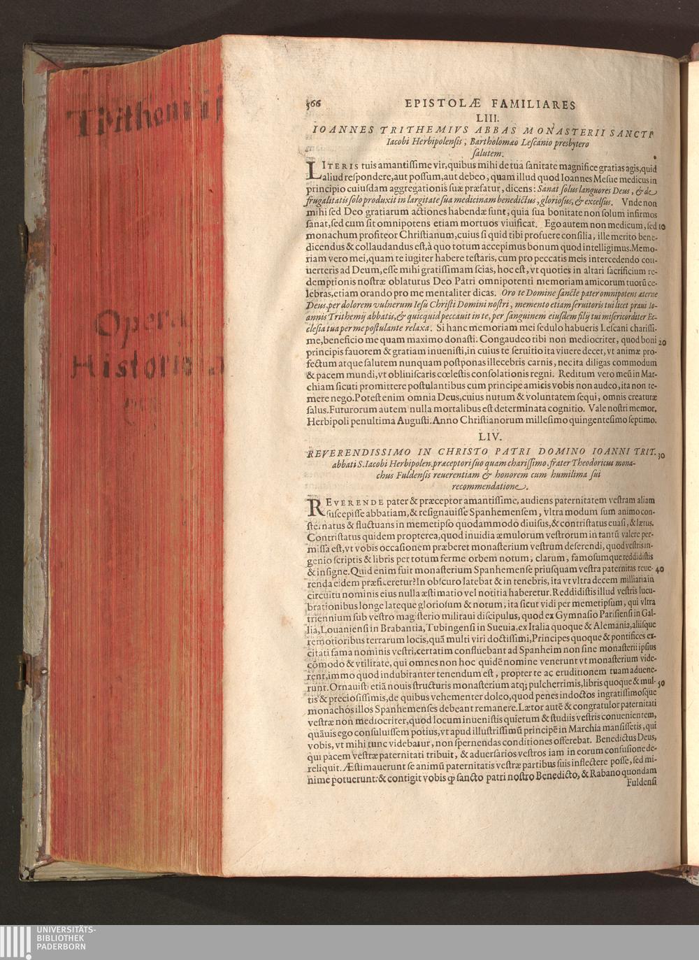 2 (1601) Iohannis Trithemii Spanheimensis Primo, Deinde D. Iacobi Maioris Apvd Herbipolin Abbatis, viri suo æuo doctissimi Secvndæ Partis Chronica Insignia Dvo : I. Coenobii Hirsavgiensis, Diœcesis Spirensis: eius fundationem & progressum ab Anno Christi DCCCXXX. vsque ad Annum MCCCLXX. II. Coenobii Spanheimensis, Diœcesis Moguntinensis: eius fundationem & progressum ab Anno Christi MCXXIIII. vsque ad Annum MDXXVI. vel potius res ab octo illis sæculis in tota Ecclesia & Imperio memorabiliter gestas, complectens; Qvorvm Privs Collatione Archetypi Ipsivs Auctoris manuscripti correctius & plenius; posterius verò istud nunc primùm è tenebris erutum, ob insignem vtilitatem optimâ fide in lucem editur; Accedunt Epistolæ eiusdem Familiares, ab excessu eius de cœnobio Spanheimensi ad Principes clarosque viros scriptæ, historiis eius æui referctæ
