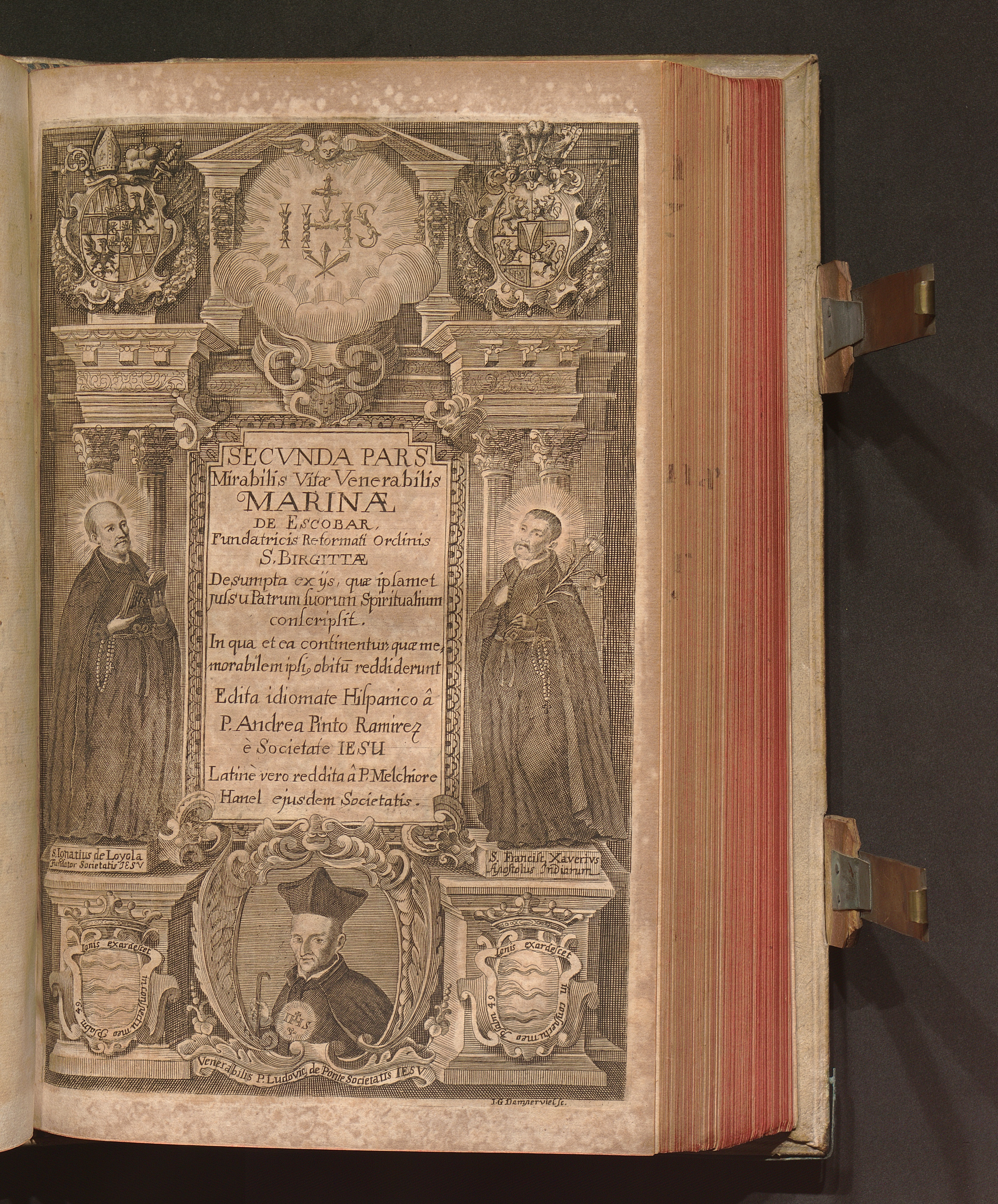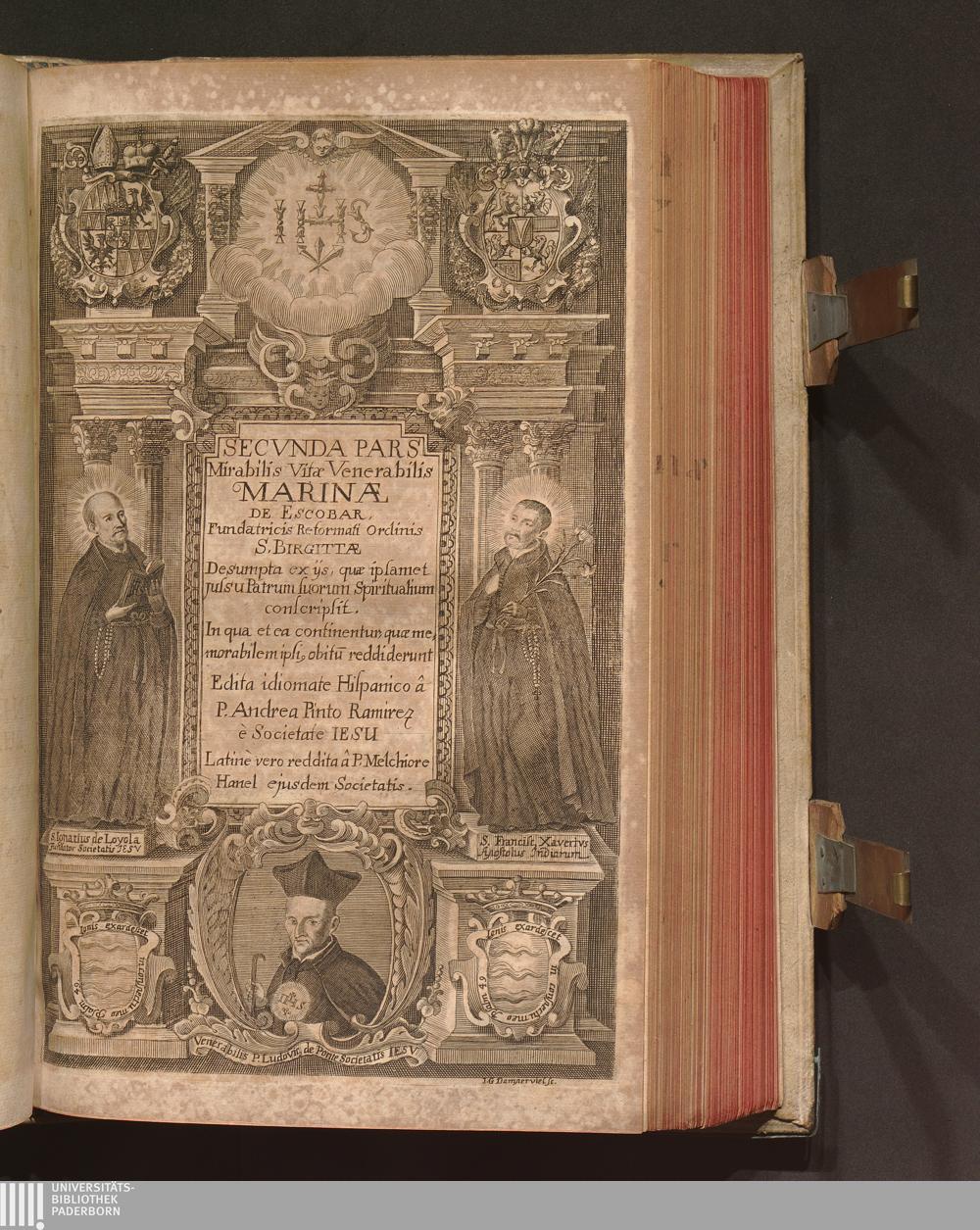 Secvnda Pars (1688) Secvnda Pars Mirabilis Vitæ Venerabilis Virginis Marinæ De Escobar / Edita idiomate Hispanico â P. Andrea Pinto Ramirez è Societate Iesu Latinè vero reddita â P. Melchiore Hanel ejusdem Societatis