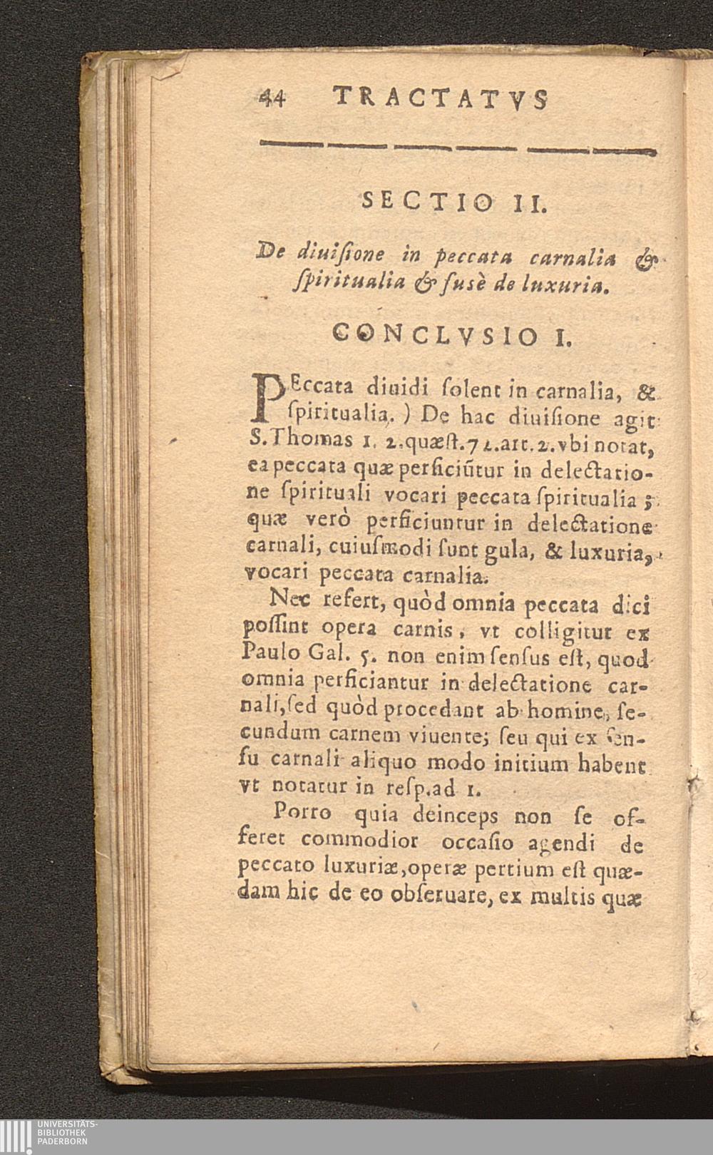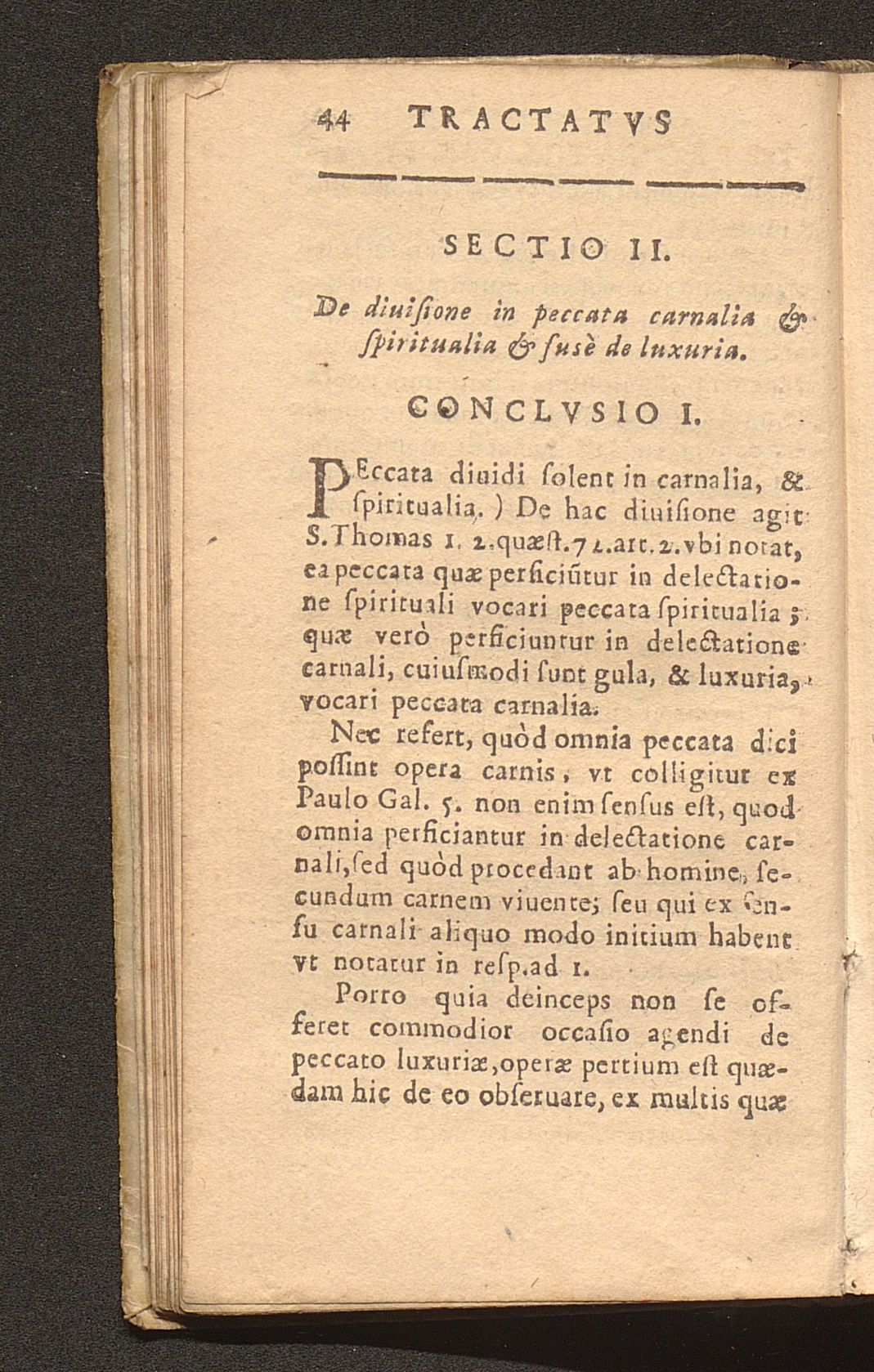 Sectio II. De diuisione in peccata carnalia, & spiritualia, & fusè de luxuria.