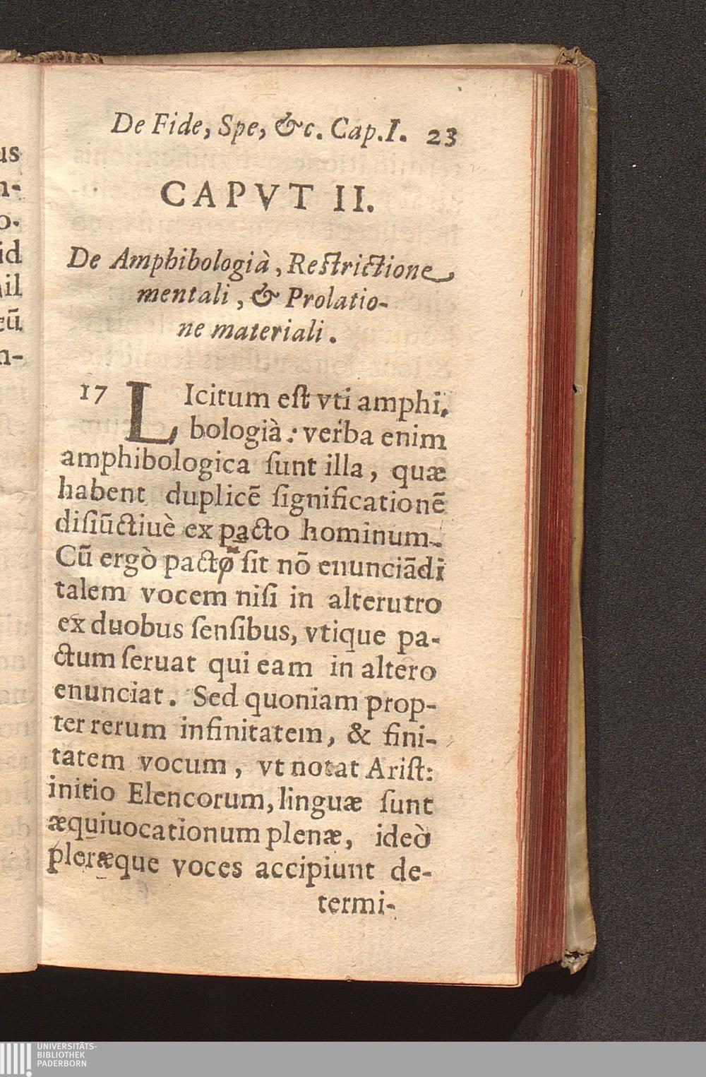 Cap. 2. De Amphibologia, Restrictione mentali, & Prolatione materiali.