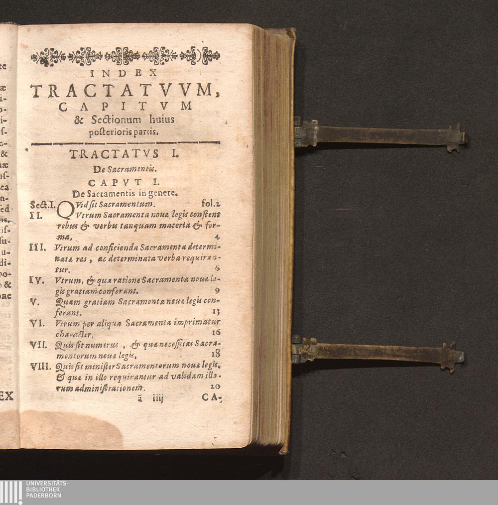 Index Tractatvvm, Capitvm, & Sectionum huius posterioris partis.