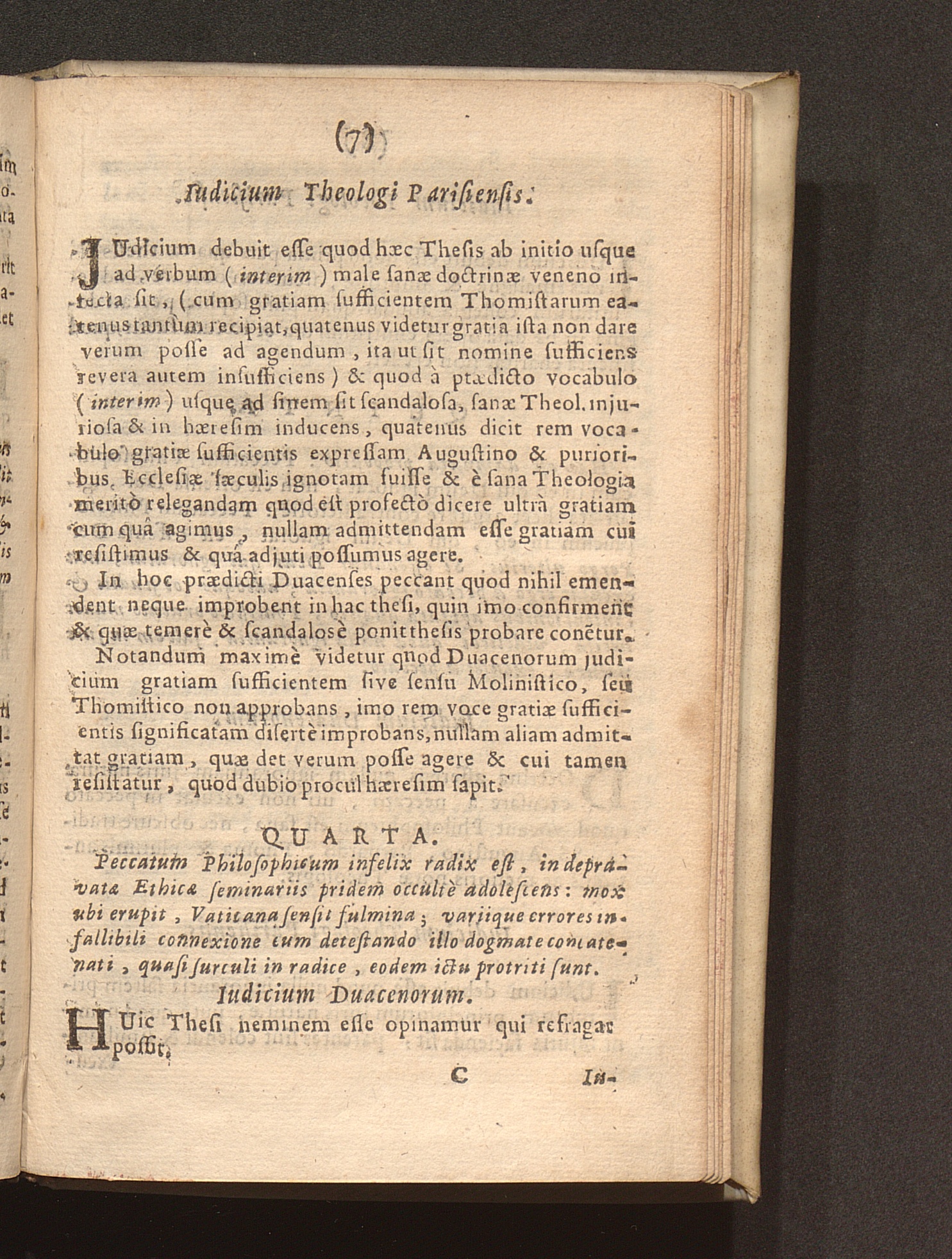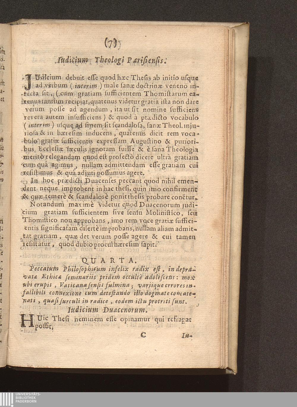 Theologus Parisiensis Inquirenti Duaceno Theologo : Mentem aperit tâm circa famosas septem Theses ad mentem D. Augustini irrefragabilis gratiæ Doctoris inscriptas, quàm circà iudicium quorumdam Professorum Duacenorum de prædictis Thesibus