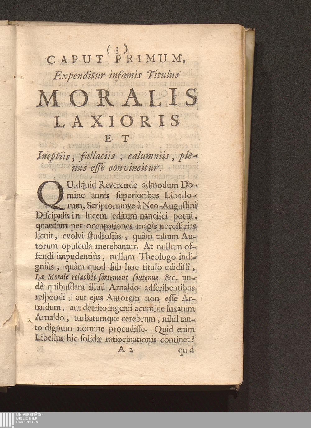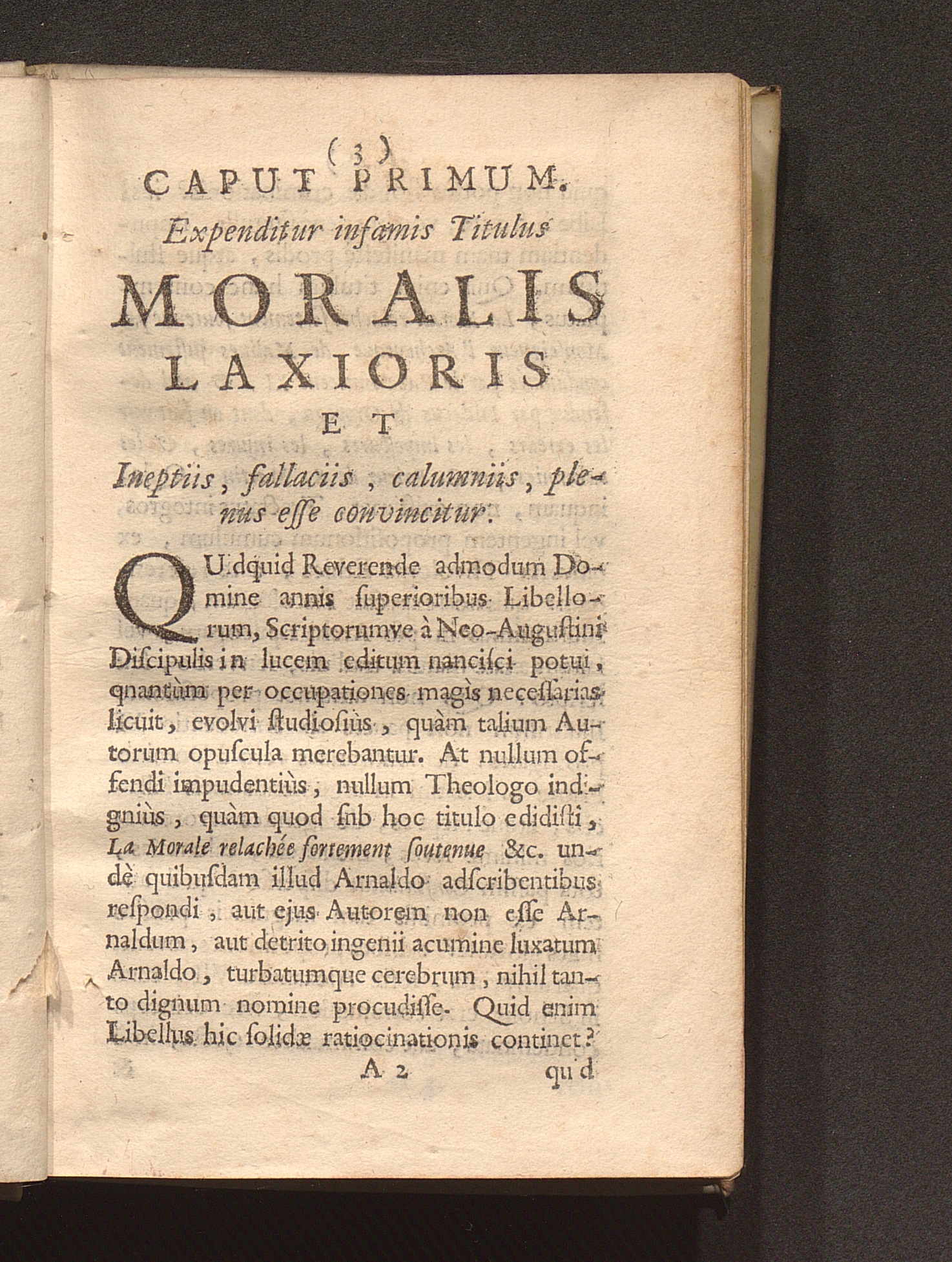 Caput Primum. Expenditur infamis Titulus Moralis Laxioris Et Ineptiis, fallaciis, calumniis, plenus esse convincitur.