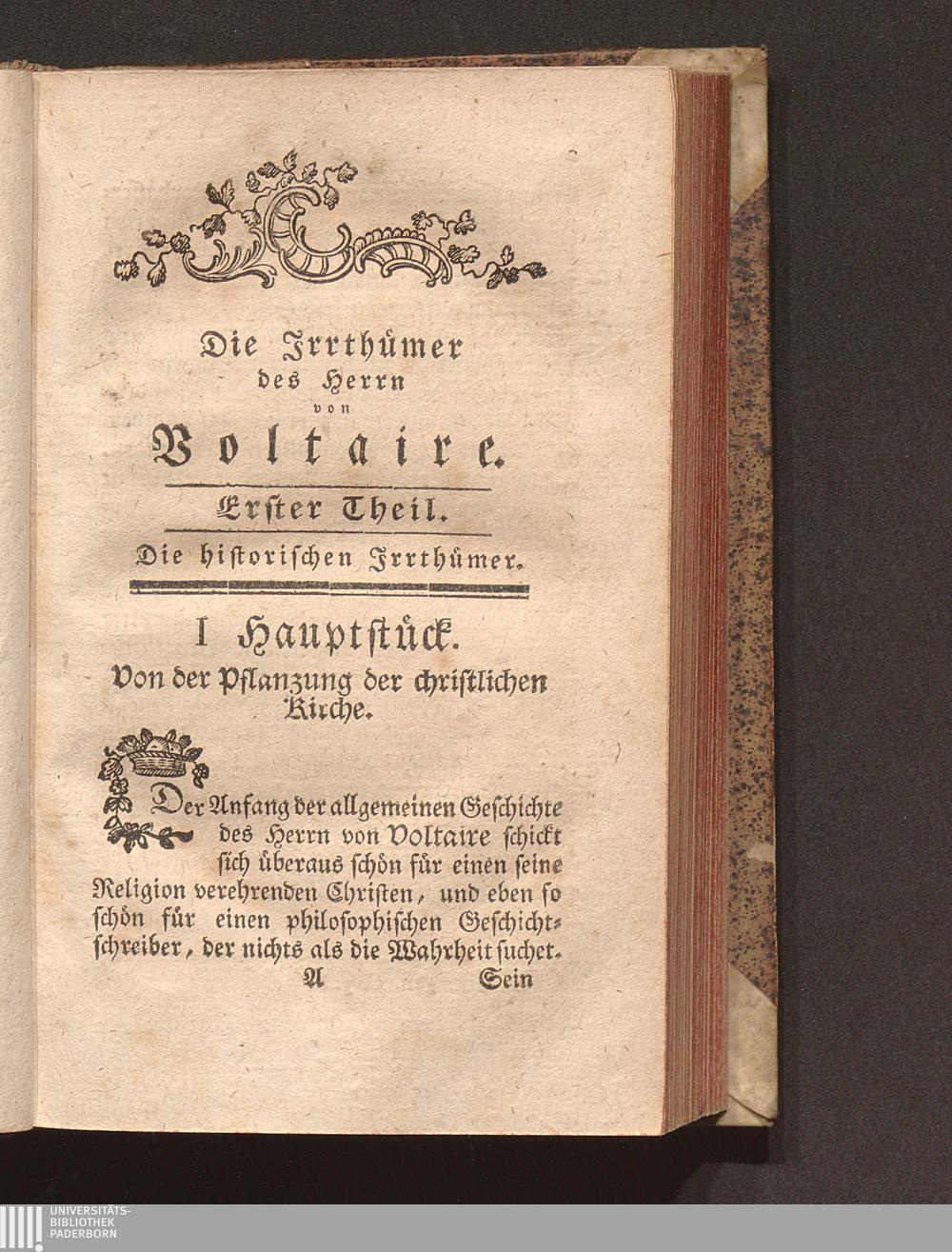 Die Irrthümer des Herrn von Voltaire. Erster Theil. Die historischen Irrthümer.