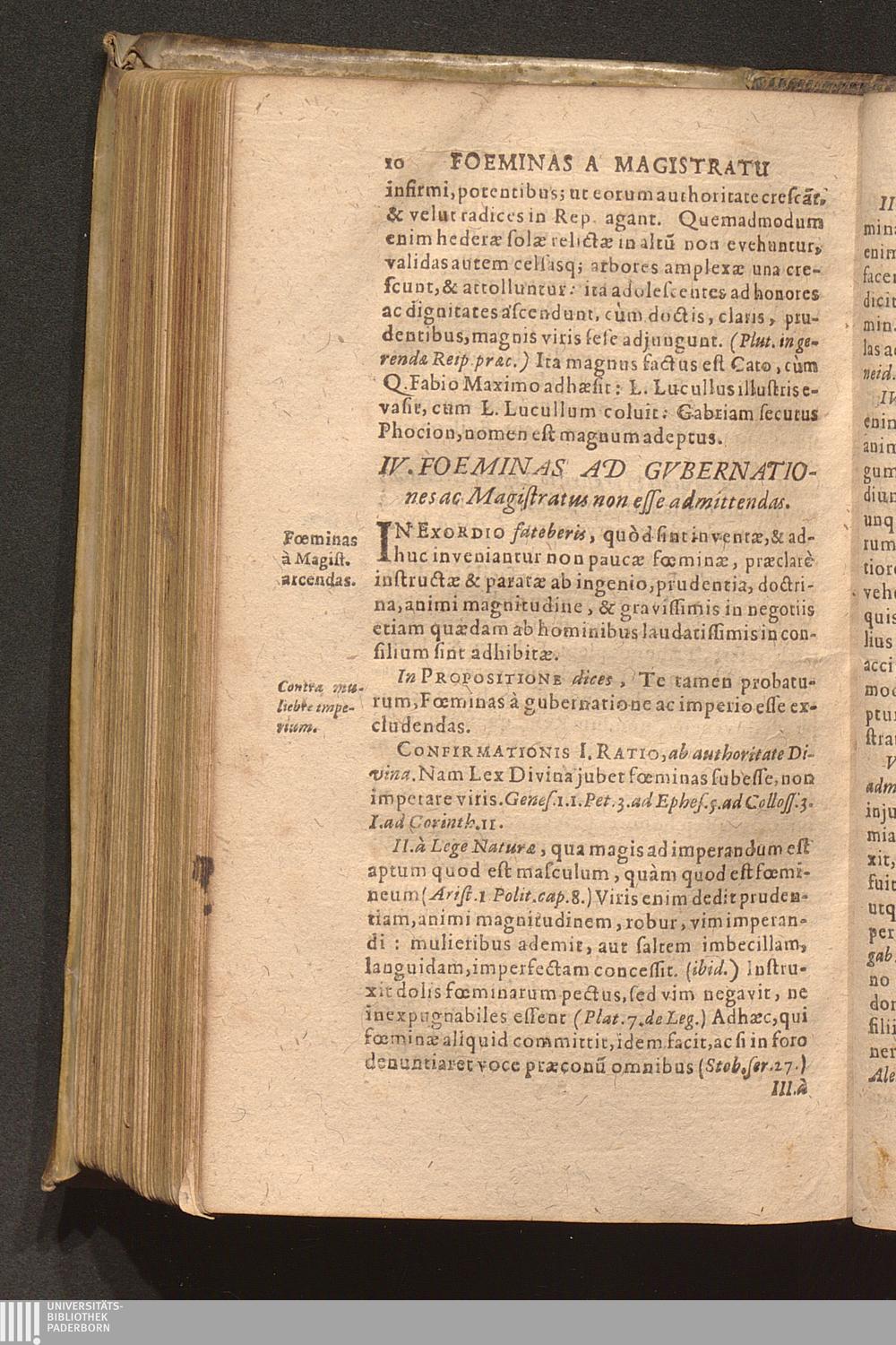 IV. Foeminas ad gubernationes ac Magistratus non esse admittendas.