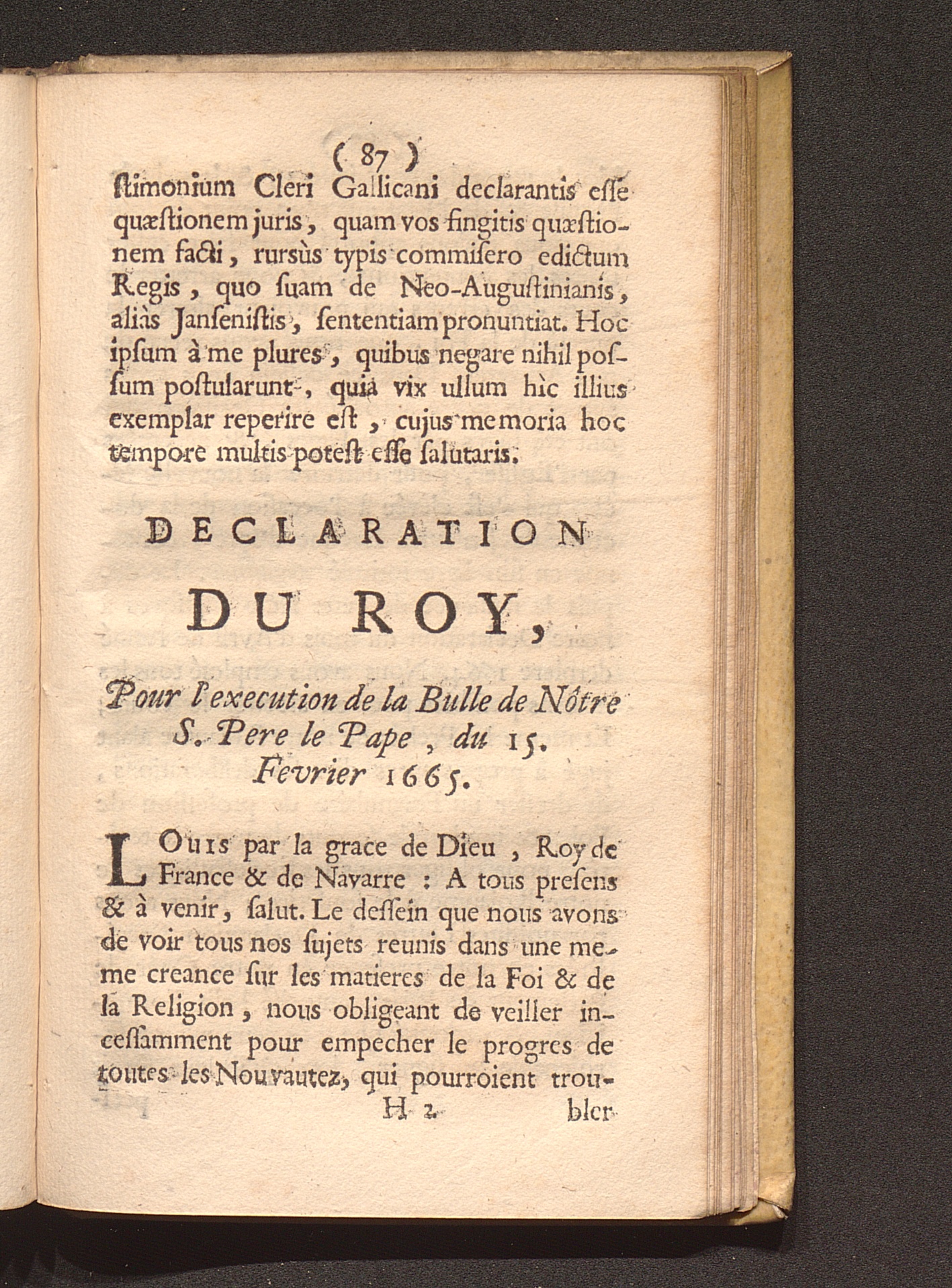 Declaration Du Roy, Pour L'execution de la Bulle de Notre S. Pere le Pape, du 15. Fevrier 1665.