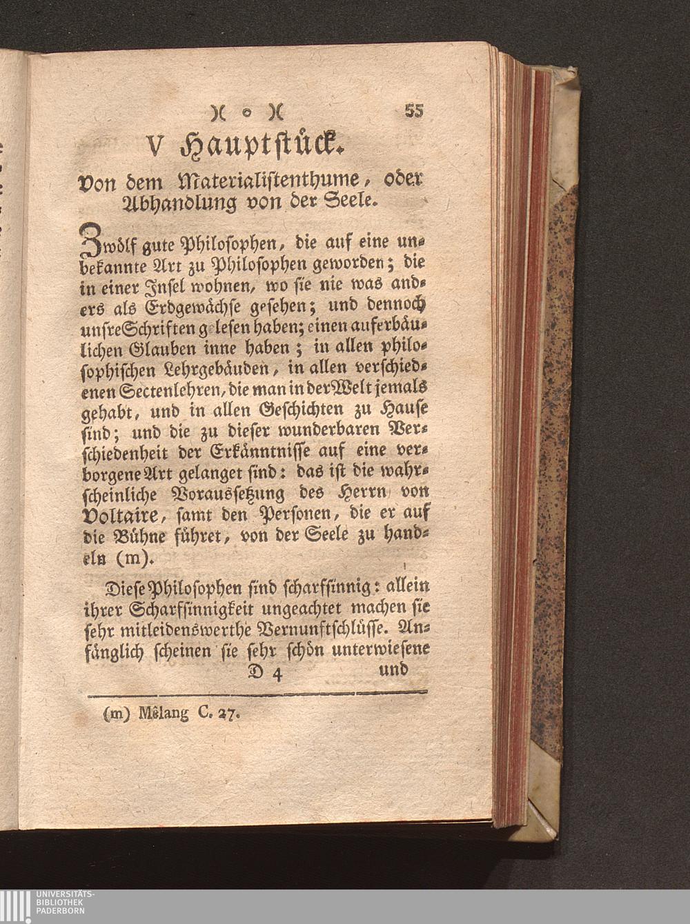 V Hauptst. Von dem Materialistenthume, oder Abhandlung von der Seele.