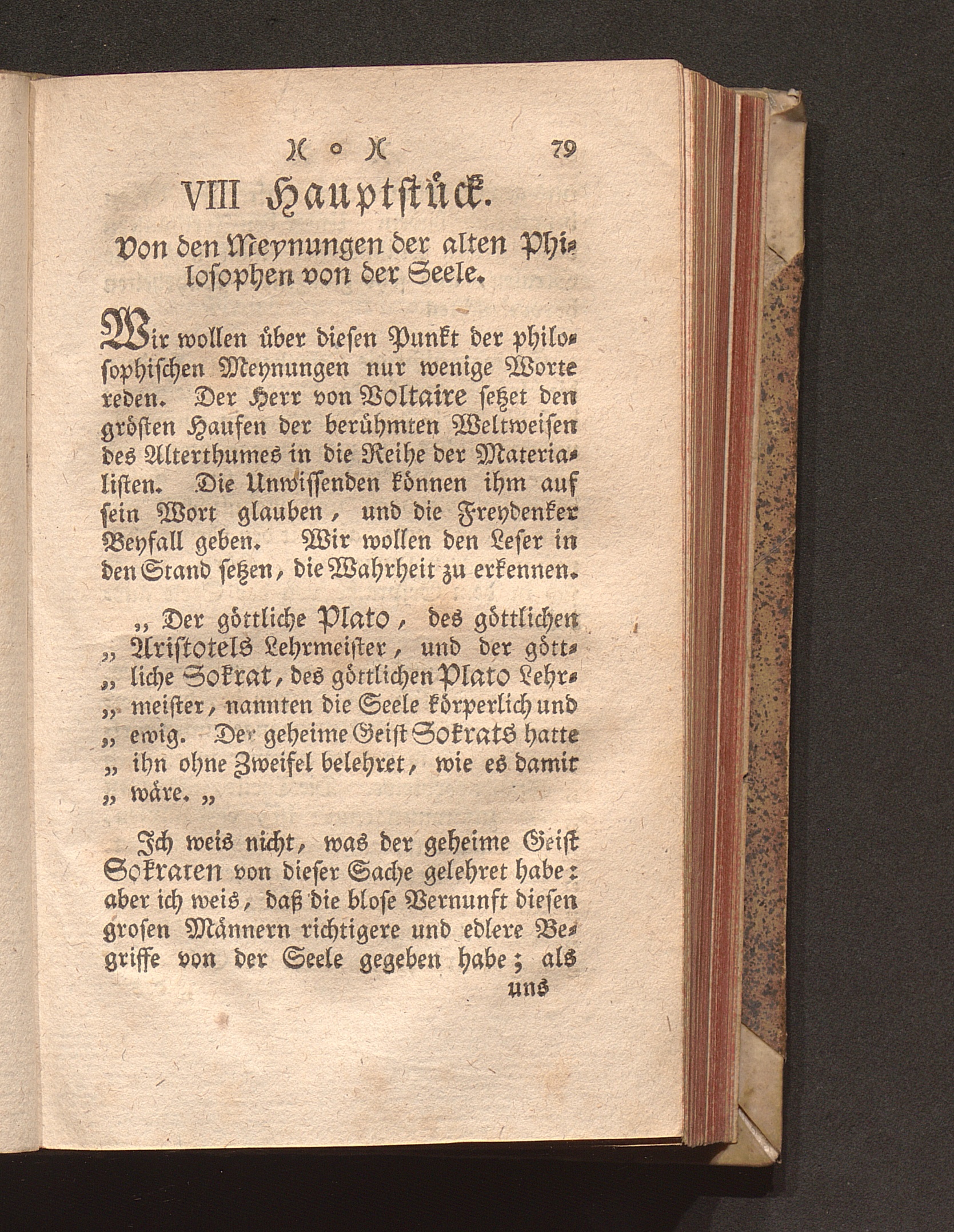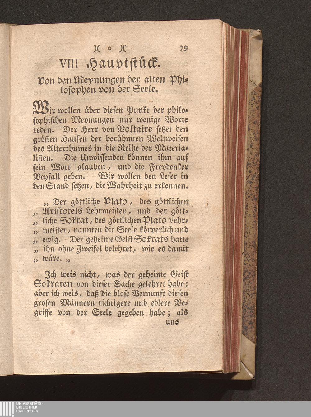 VIII Hauptst. Von den Meynungen der alten Philosophen von der Seele.