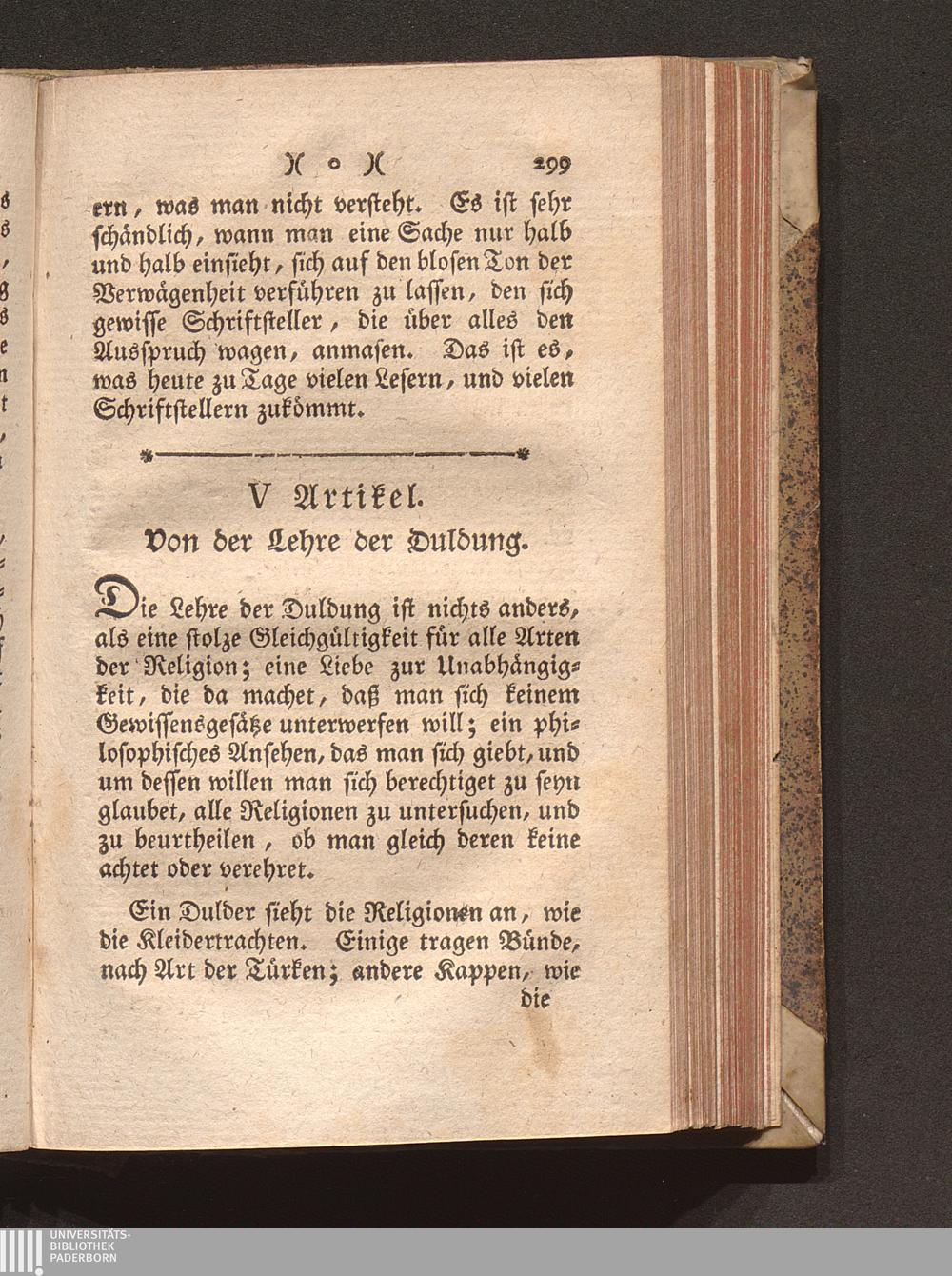 V Artik. Von der Lehre der Duldung.