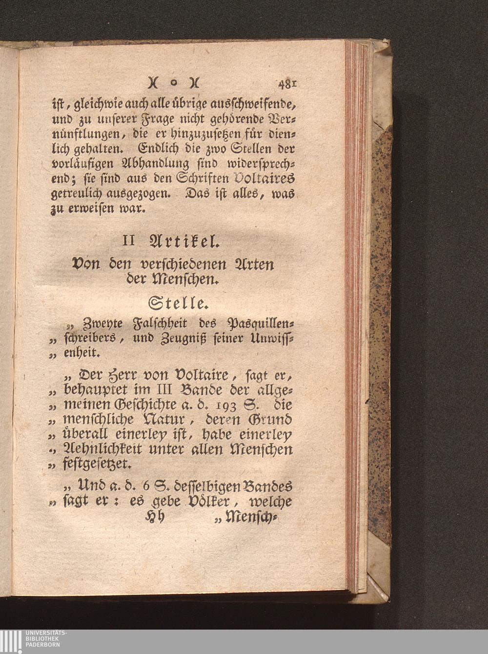 II Artik. Von den verschiedenen Arten der Menschen.