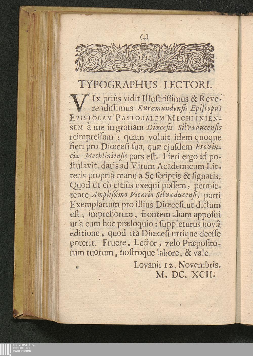 Epistola Pastoralis Illustrissimi Ac Reverendissimi Domini D. Humberti Guilielmi A Præcipiano, Archiepiscopi Mechliniensis : Super præcipuis Ecclesiæ Belgicæ turbis; Per alios quoque RR. ejusdem Provinciæ Ordinarios Adoptata, ac à Summo Pontifice laudata, Jussu Martini Stejartii Vicarii Apostolici Silvæducensis