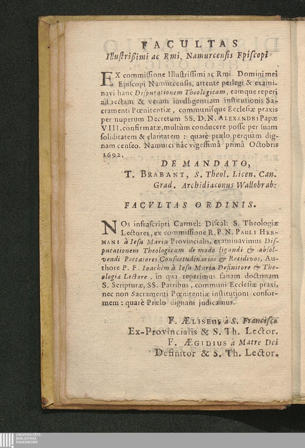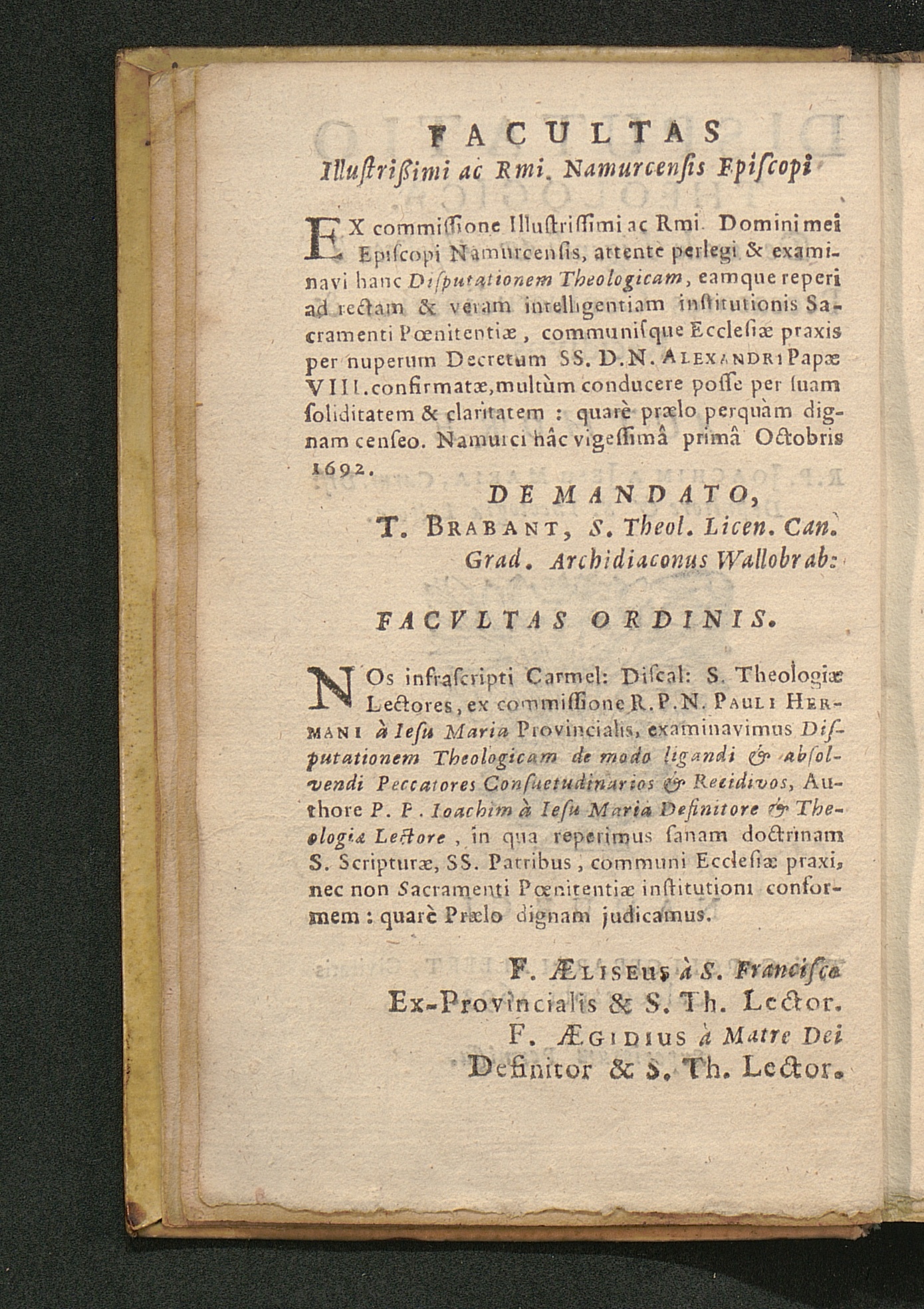 Facultas Illustrißimi ac R[everendissi]mi Namurcensis Episcopi