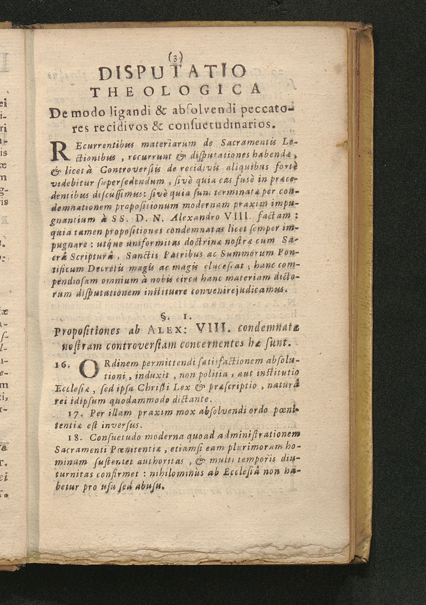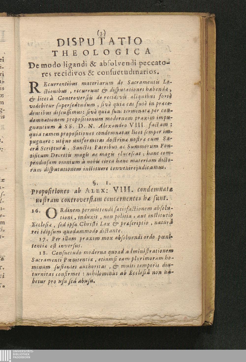 §. 1. Propositiones ab Alex: VIII. condemnatæ nostram controversiam concernentes[...]