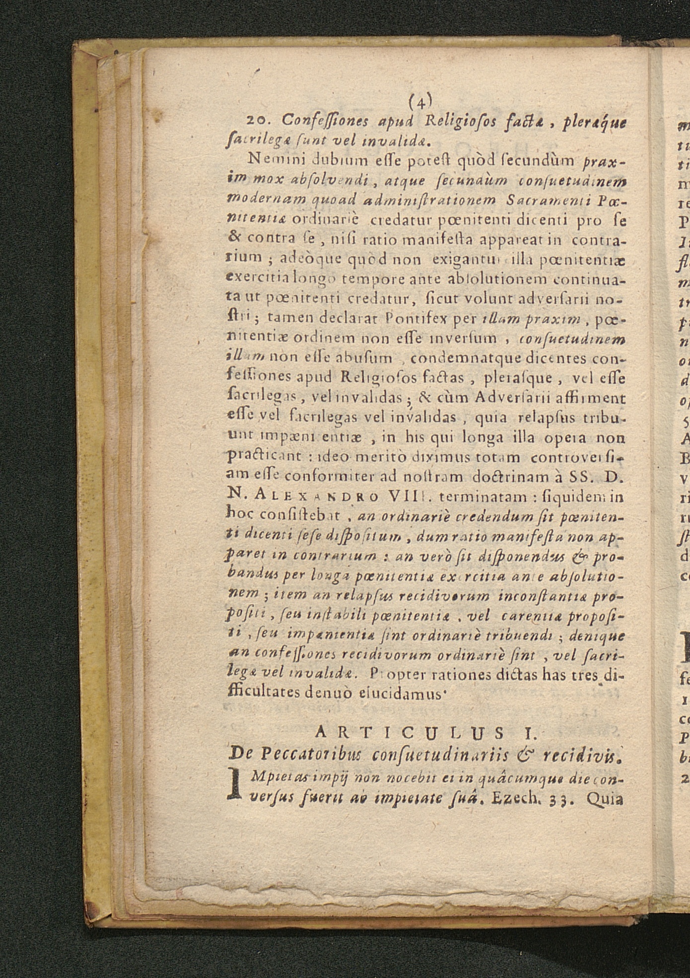 Articulus IV. Relapsus præcisè secundùm se non est signum carentiæ propositi emendationis nec Confeßionum præcedentium nullitàtis.