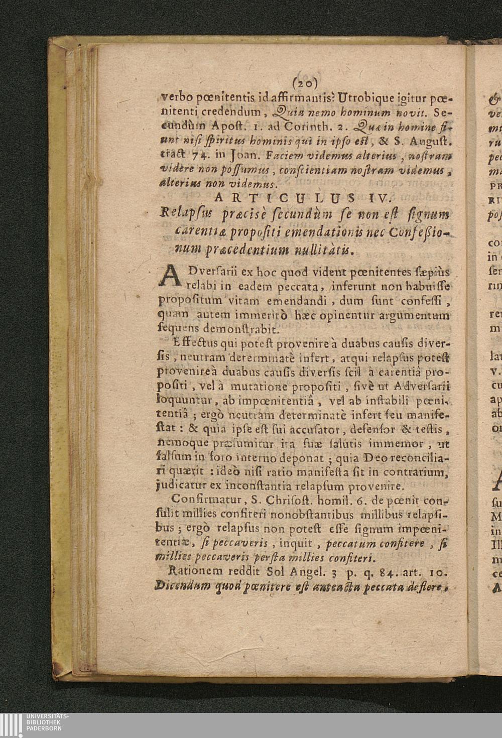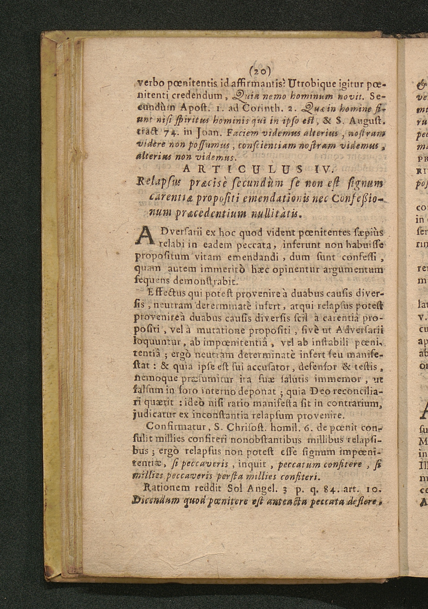 Articulus IV. Relapsus præcisè secundùm se non est signum carentiæ propositi emendationis[...]