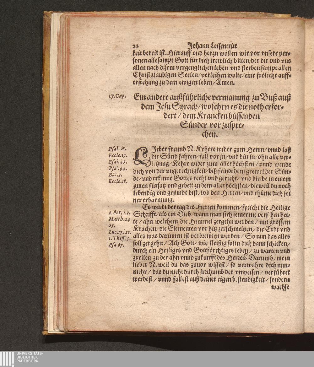 Catholisch Pfarbuch Oder Form vnd Weise/ wie die Catholischen Seelsorger (jetziger hochgefehrlicher zeit) jre Krancken eingepfarrten ohne vnderscheidt besuchen ... sollen / Durch Den Ehrwürdigen Herren Johan. Leisentritt/ Administratorem Ecclesiasticum, &c. vnd Thumdechant zu Budissin/ [et]c.
