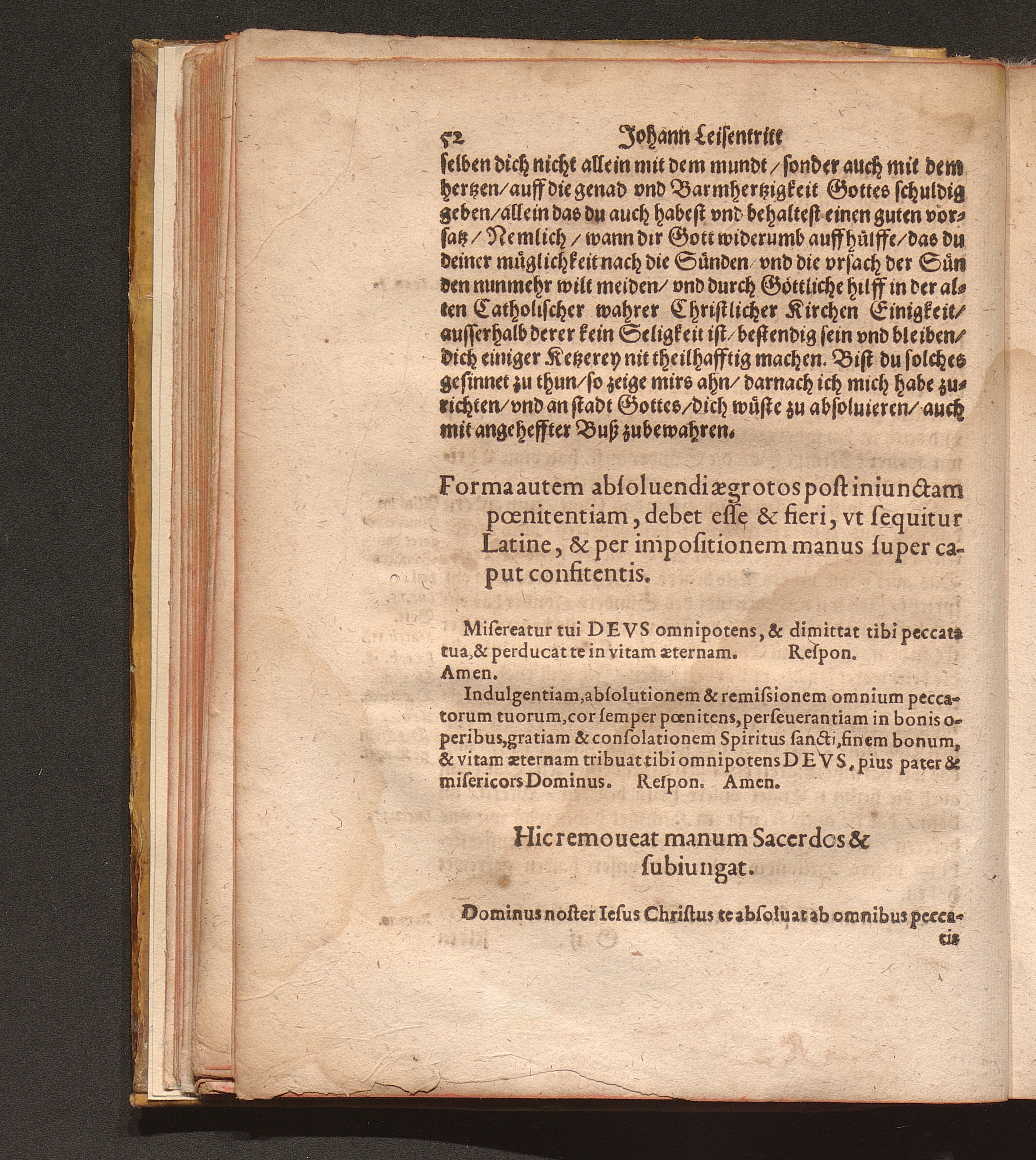 Catholisch Pfarbuch Oder Form vnd Weise/ wie die Catholischen Seelsorger (jetziger hochgefehrlicher zeit) jre Krancken eingepfarrten ohne vnderscheidt besuchen ... sollen / Durch Den Ehrwürdigen Herren Johan. Leisentritt/ Administratorem Ecclesiasticum, &c. vnd Thumdechant zu Budissin/ [et]c.