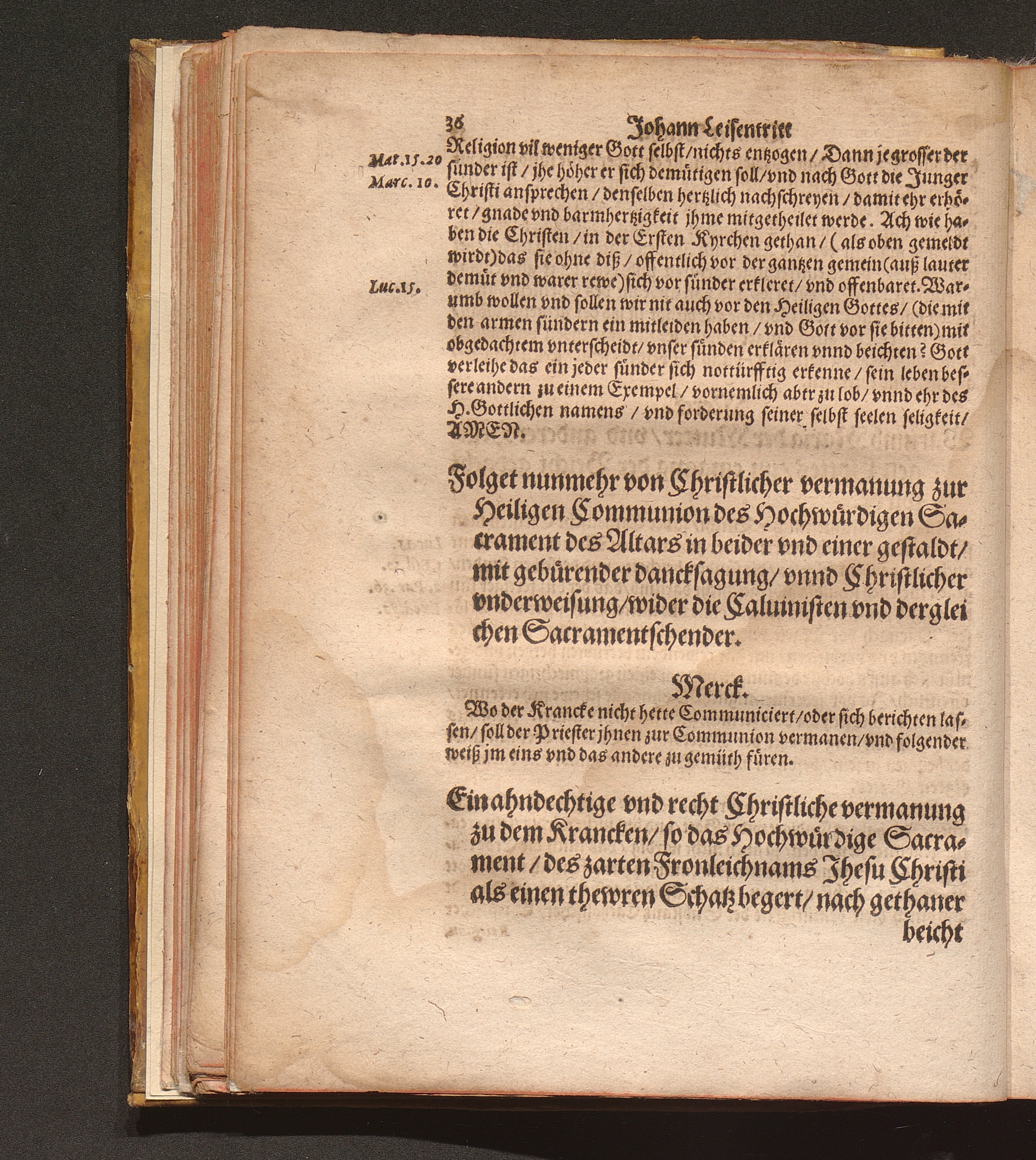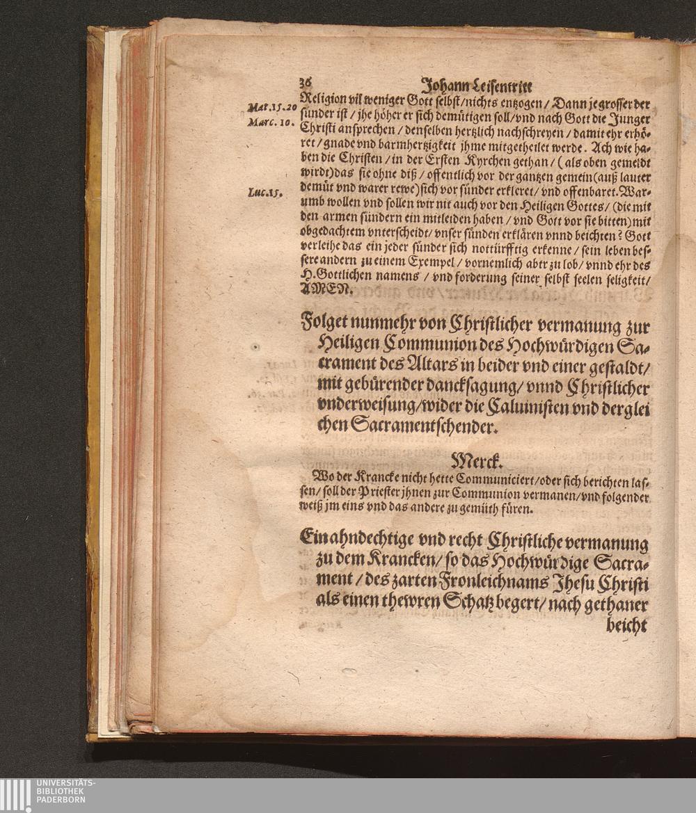 Catholisch Pfarbuch Oder Form vnd Weise/ wie die Catholischen Seelsorger (jetziger hochgefehrlicher zeit) jre Krancken eingepfarrten ohne vnderscheidt besuchen ... sollen / Durch Den Ehrwürdigen Herren Johan. Leisentritt/ Administratorem Ecclesiasticum, &c. vnd Thumdechant zu Budissin/ [et]c.