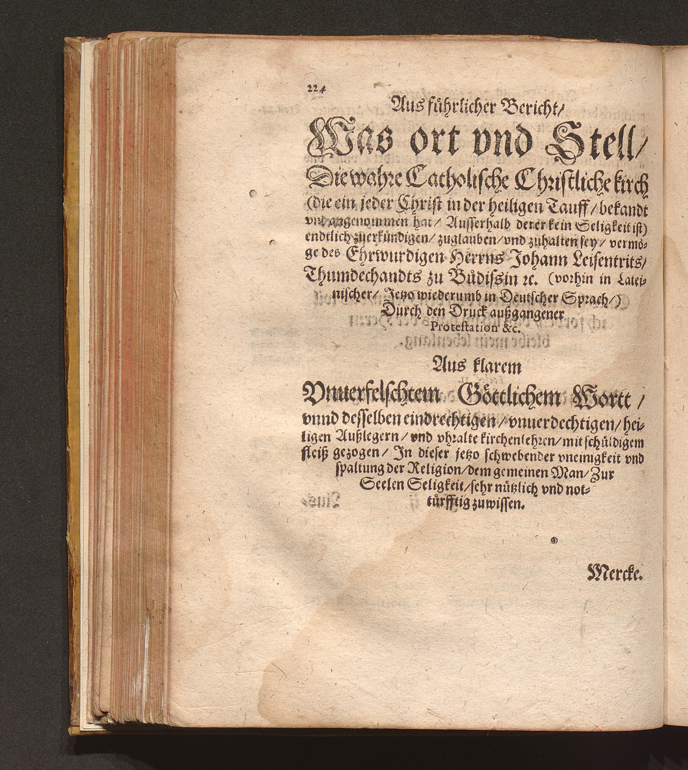 Catholisch Pfarbuch Oder Form vnd Weise/ wie die Catholischen Seelsorger (jetziger hochgefehrlicher zeit) jre Krancken eingepfarrten ohne vnderscheidt besuchen ... sollen / Durch Den Ehrwürdigen Herren Johan. Leisentritt/ Administratorem Ecclesiasticum, &c. vnd Thumdechant zu Budissin/ [et]c.
