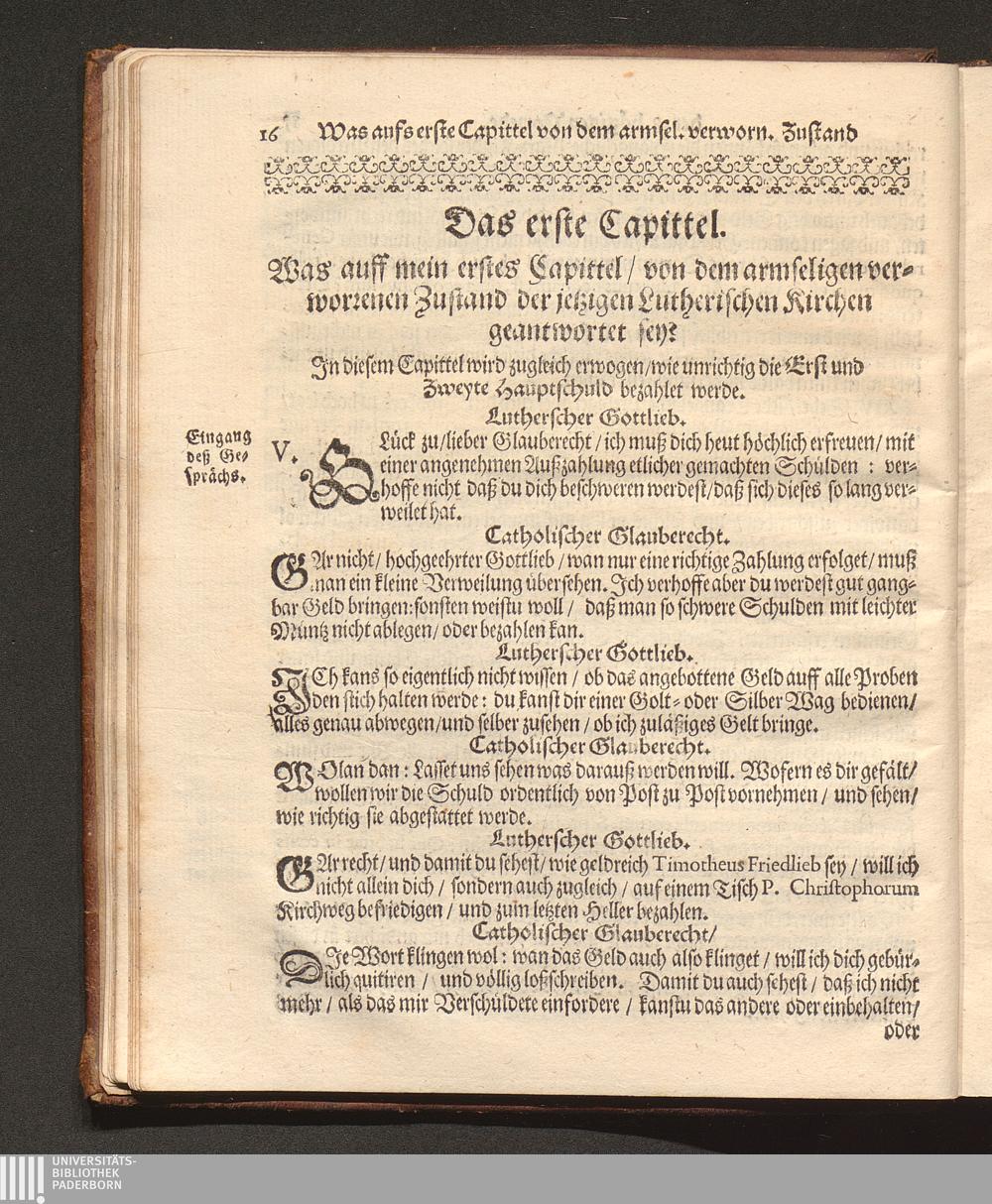 Dritter Theil (1677) Apologia Formulæ Professionis Fidei Defensæ Oder Dritter Theil Deß Gegengesprächs Warum wilt du nicht Römisch-Catholisch werden/ wie deine Vorfahren gewesen? : Jn diesem Wird das ungültige/ hochstraffbare Kippergeld/ Welches unlängst Timotheus Friedlieb außgebotten/ seine hinterlassene nachdenckliche hohe Schulden abzulegen/ An dem Probstein des H. göttlichen Worts Vnd der Vhralten Kirchenlehr angestrichen/ Und gar ungültig unannemlich befunden ; Allen irrlauffenden Seelen zur Warnung und Nachricht