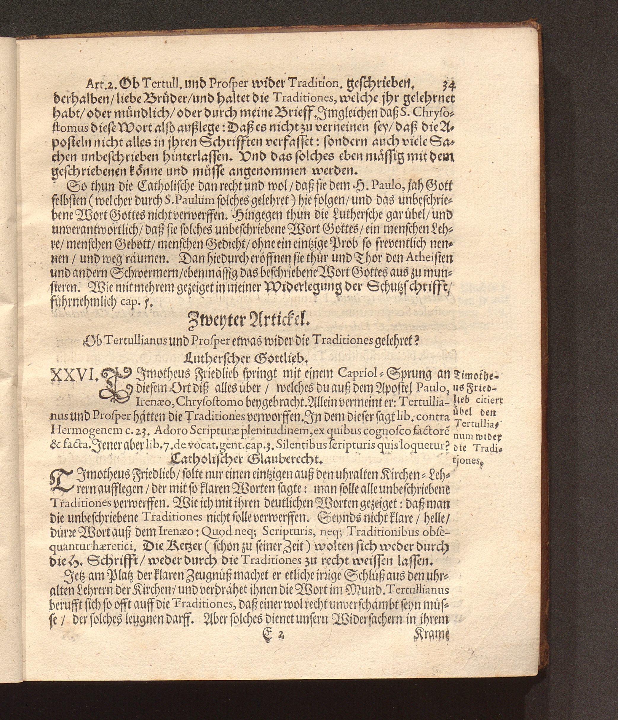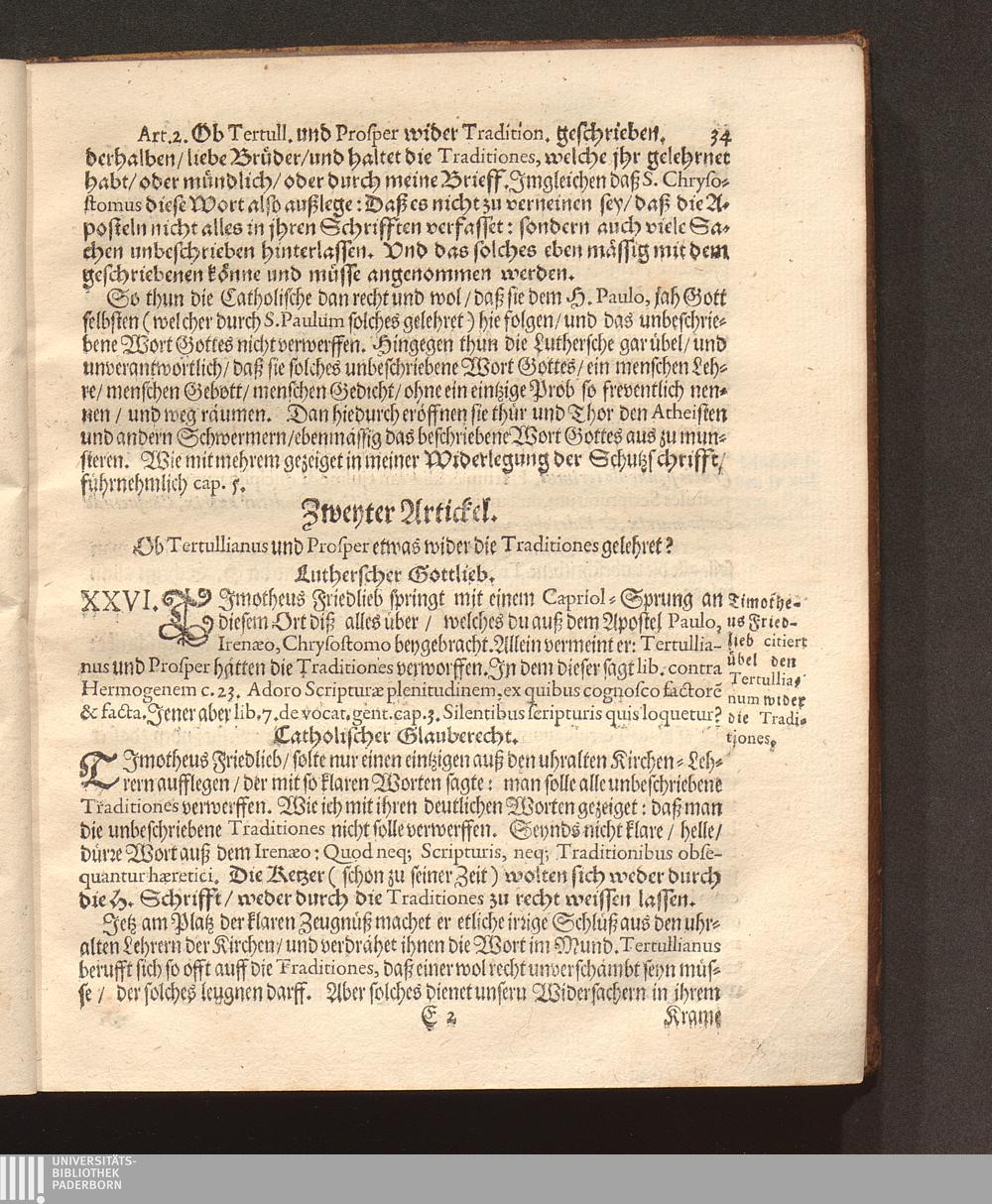 Dritter Theil (1677) Apologia Formulæ Professionis Fidei Defensæ Oder Dritter Theil Deß Gegengesprächs Warum wilt du nicht Römisch-Catholisch werden/ wie deine Vorfahren gewesen? : Jn diesem Wird das ungültige/ hochstraffbare Kippergeld/ Welches unlängst Timotheus Friedlieb außgebotten/ seine hinterlassene nachdenckliche hohe Schulden abzulegen/ An dem Probstein des H. göttlichen Worts Vnd der Vhralten Kirchenlehr angestrichen/ Und gar ungültig unannemlich befunden ; Allen irrlauffenden Seelen zur Warnung und Nachricht