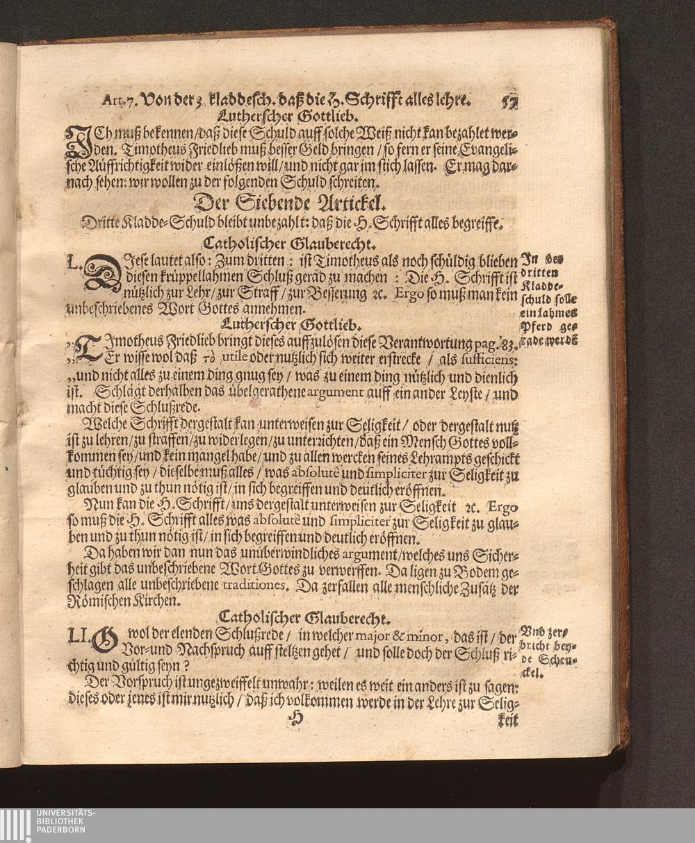 Dritter Theil (1677) Apologia Formulæ Professionis Fidei Defensæ Oder Dritter Theil Deß Gegengesprächs Warum wilt du nicht Römisch-Catholisch werden/ wie deine Vorfahren gewesen? : Jn diesem Wird das ungültige/ hochstraffbare Kippergeld/ Welches unlängst Timotheus Friedlieb außgebotten/ seine hinterlassene nachdenckliche hohe Schulden abzulegen/ An dem Probstein des H. göttlichen Worts Vnd der Vhralten Kirchenlehr angestrichen/ Und gar ungültig unannemlich befunden ; Allen irrlauffenden Seelen zur Warnung und Nachricht