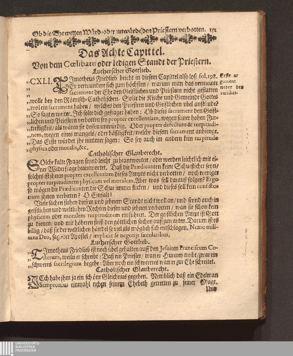 Dritter Theil (1677) Apologia Formulæ Professionis Fidei Defensæ Oder Dritter Theil Deß Gegengesprächs Warum wilt du nicht Römisch-Catholisch werden/ wie deine Vorfahren gewesen? : Jn diesem Wird das ungültige/ hochstraffbare Kippergeld/ Welches unlängst Timotheus Friedlieb außgebotten/ seine hinterlassene nachdenckliche hohe Schulden abzulegen/ An dem Probstein des H. göttlichen Worts Vnd der Vhralten Kirchenlehr angestrichen/ Und gar ungültig unannemlich befunden ; Allen irrlauffenden Seelen zur Warnung und Nachricht