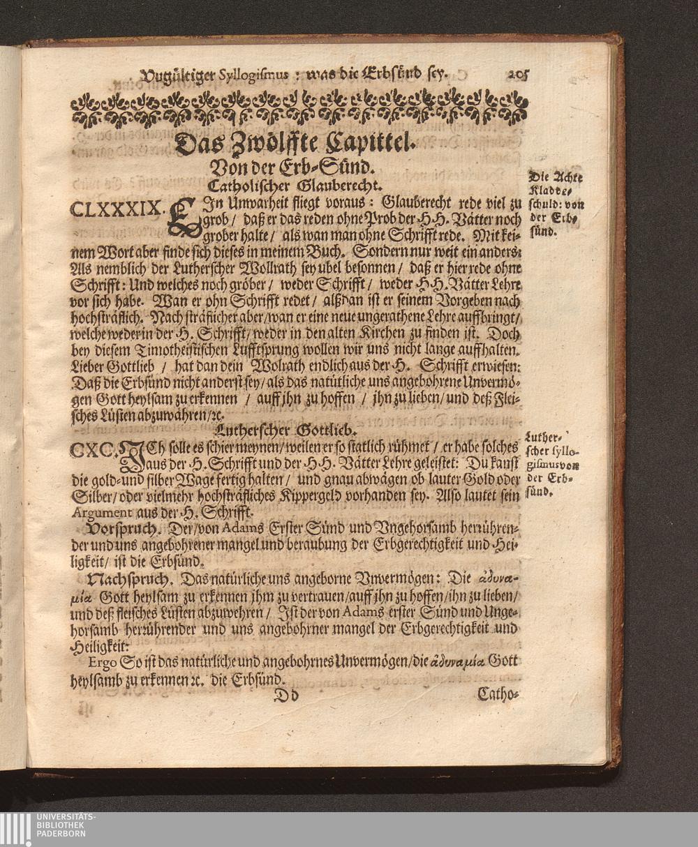Dritter Theil (1677) Apologia Formulæ Professionis Fidei Defensæ Oder Dritter Theil Deß Gegengesprächs Warum wilt du nicht Römisch-Catholisch werden/ wie deine Vorfahren gewesen? : Jn diesem Wird das ungültige/ hochstraffbare Kippergeld/ Welches unlängst Timotheus Friedlieb außgebotten/ seine hinterlassene nachdenckliche hohe Schulden abzulegen/ An dem Probstein des H. göttlichen Worts Vnd der Vhralten Kirchenlehr angestrichen/ Und gar ungültig unannemlich befunden ; Allen irrlauffenden Seelen zur Warnung und Nachricht