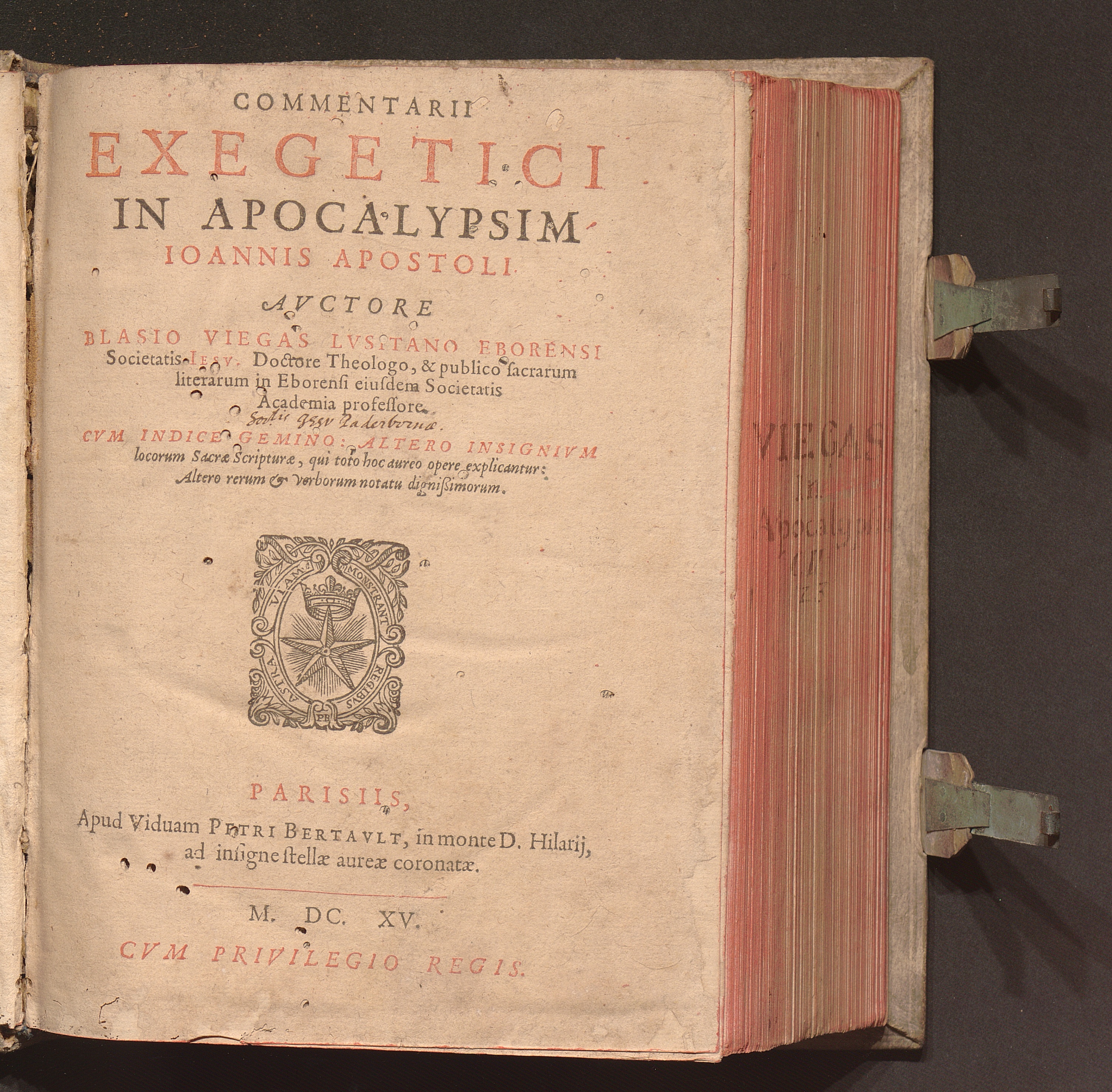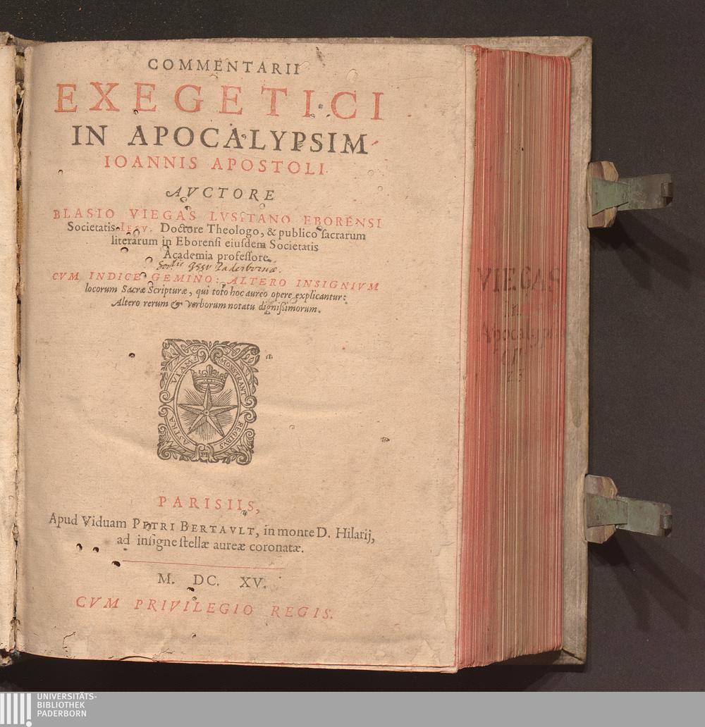 Commentarii Exegetici In Apocalypsim Ioannis Apostoli / Avctore Blasio Viegas Lvsitano Eborensi Societatis Iesv. Doctore Theologo, & publico sacrarum literarum in Eborensi eiusdem Societatis Academia professore