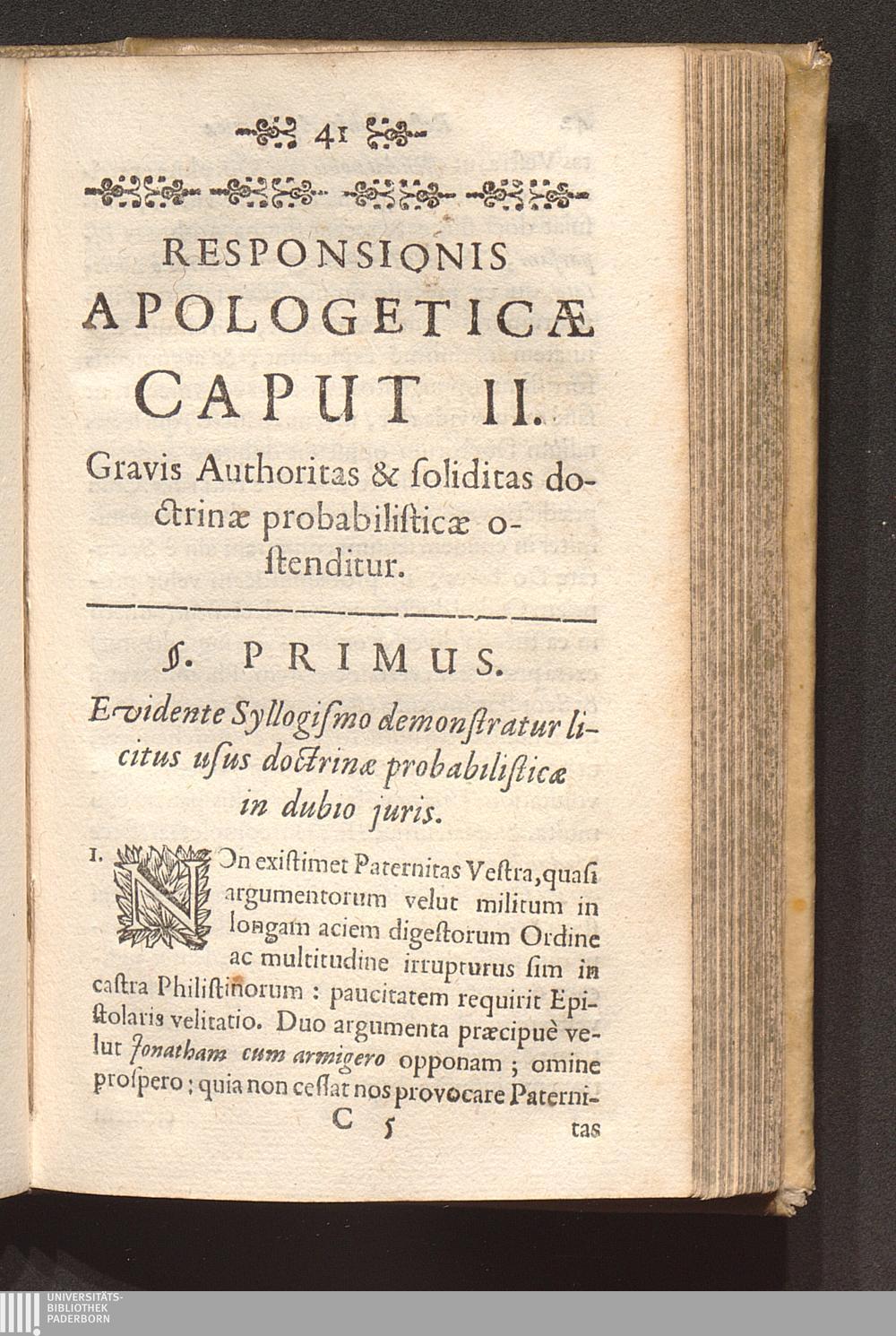 Apologia Pro Conscientiis infirmis, Sev Responsio Benigna Pro securitate dictaminis practici super certa probabilitate fundati / Quam Rigidioris sententiæ novissimo Patrono Admodum Rev. & Eximio P. M. Joanni Schweitzer, Ordinis FF. Eremitarum S. P. Augustini Provinciali Cis-Mosano ... Offerebat Opponens ita nominatus [B. F. S. J.]