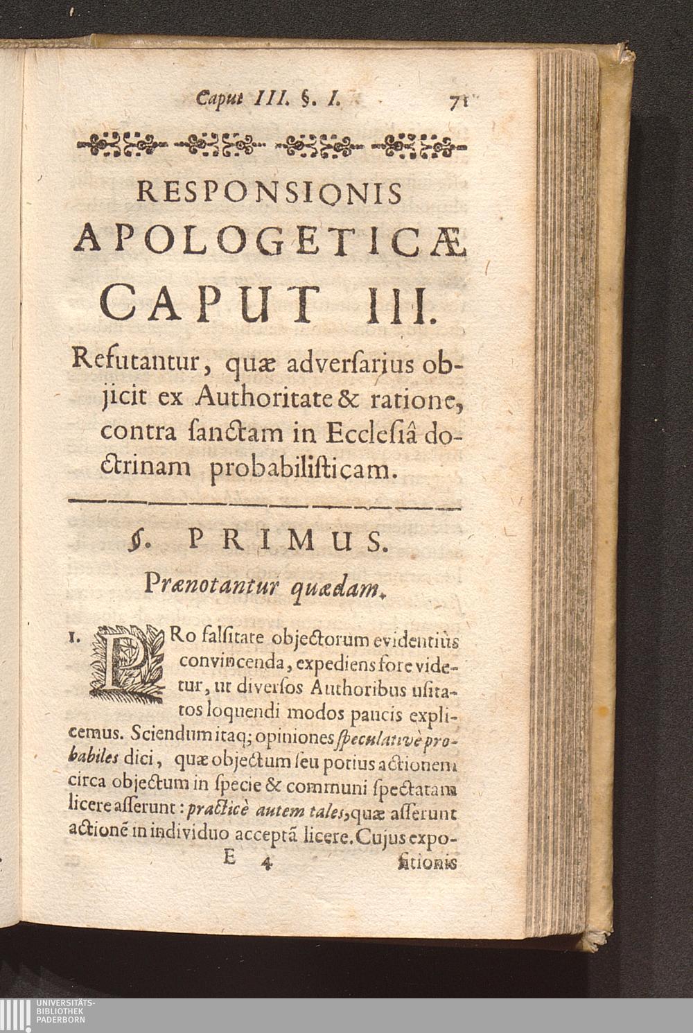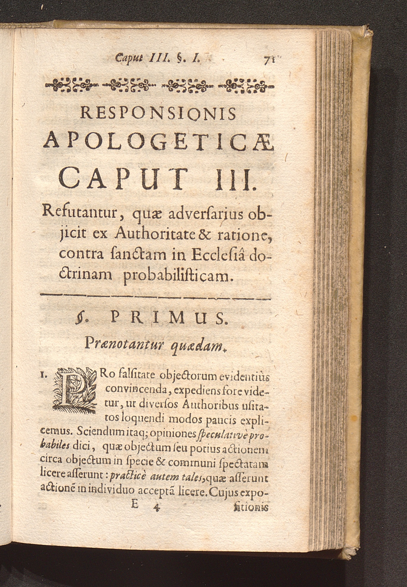 Apologia Pro Conscientiis infirmis, Sev Responsio Benigna Pro securitate dictaminis practici super certa probabilitate fundati / Quam Rigidioris sententiæ novissimo Patrono Admodum Rev. & Eximio P. M. Joanni Schweitzer, Ordinis FF. Eremitarum S. P. Augustini Provinciali Cis-Mosano ... Offerebat Opponens ita nominatus [B. F. S. J.]