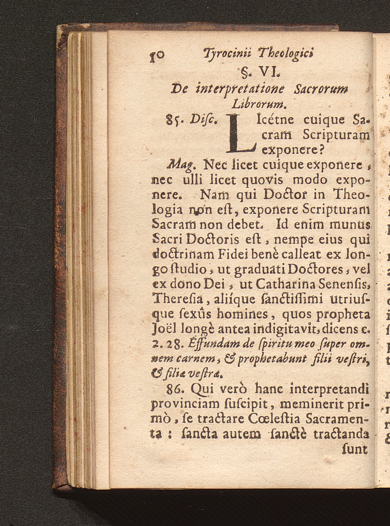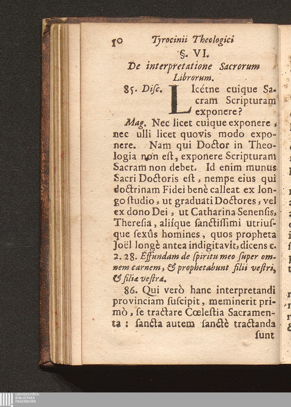 Tyrocinium Theologicum : Quo traditur Compendiaria Notitia Theologiæ Scripturalis, Theologiæ Scholasticæ, Theologiæ Polemicæ, Facultatis Canonicæ, Theologiæ Moralis, ac Theologiæ Mysticæ, Omnésque harum Disciplinarum Tractatus, Objecta, Fundamenta præcipua recensentur: Et Insuper Concilia Oecumenica, Pontifices, Patres, Patrum Scripta Genuina, Controversiæ Fidei, Hæreses, Propositiones damnatæ chronologicè proponuntur / Auctore Balthassare Francolino, Societatis Jesu Theologo