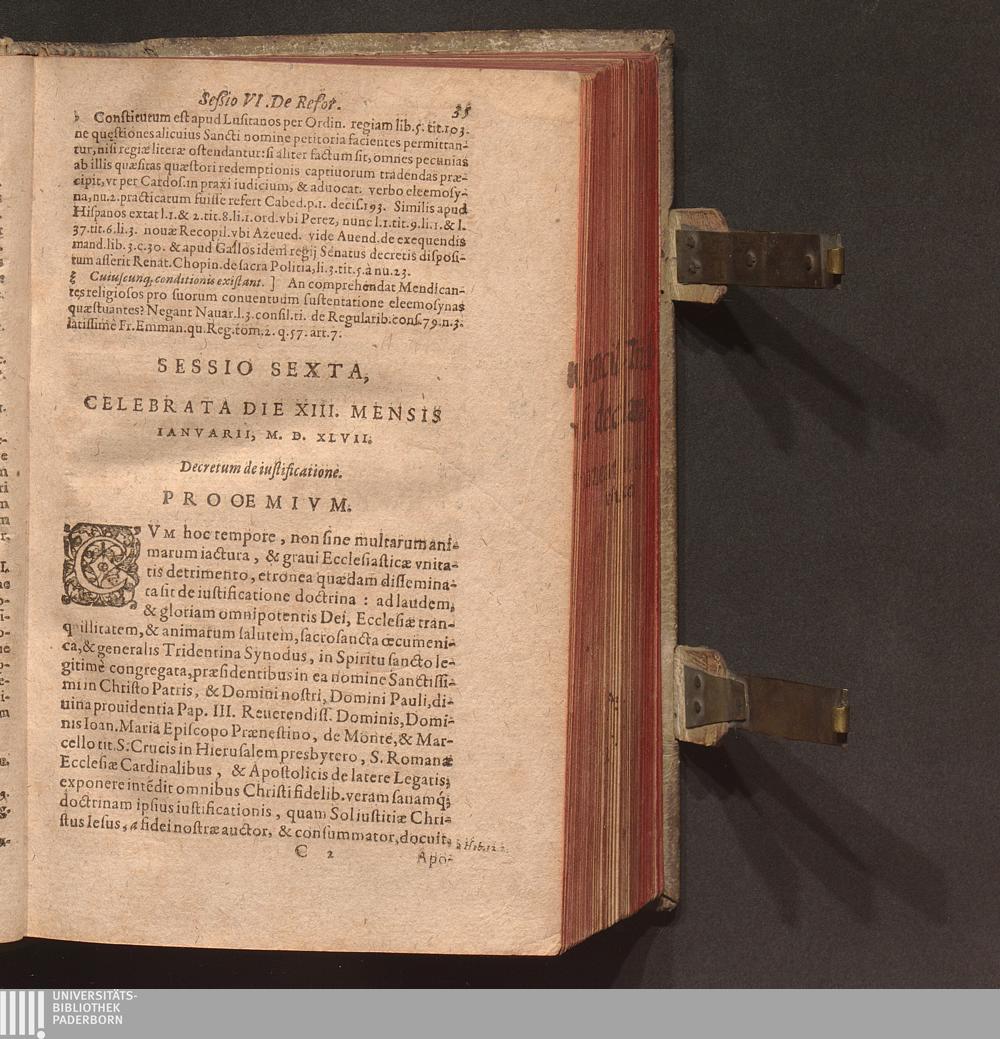 Sacros. Concilii Tridentini Canones Et Decreta : Item Declarationes Cardinalivm Concilii Interpretvm / Ex Vltima recognitione Ioan. Gallemart. Quibus iam primùm accesserunt, non editæ etiam quædam hactenus, aut indigestæ; nunc ad sedes suas reductæ; Cvm Citationibvs Ioannis Sotealli Theol. & Horatij Lucij IC.ti: nec non Remissionibvs P. Augustini Barbosa , ...