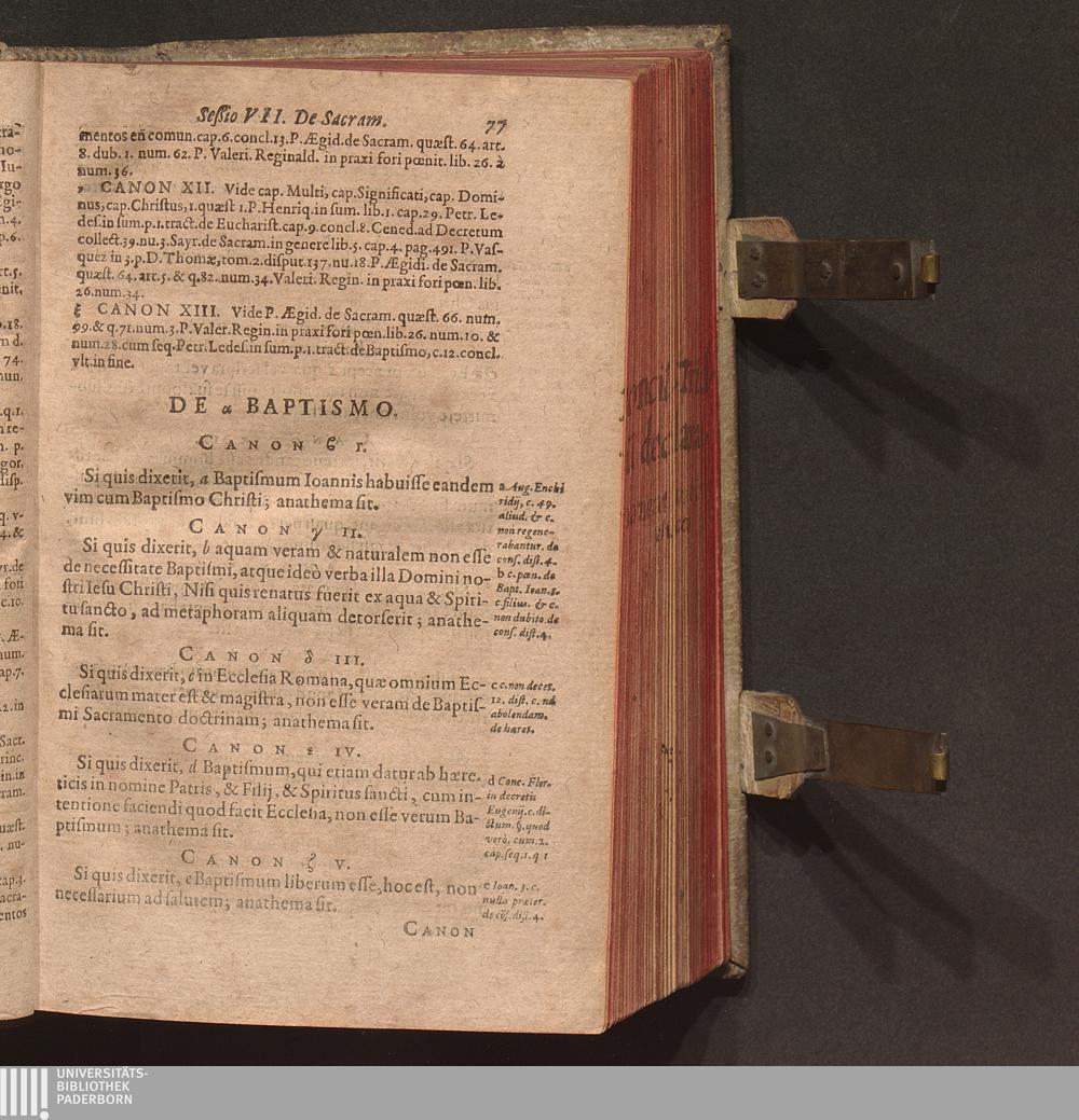 Sacros. Concilii Tridentini Canones Et Decreta : Item Declarationes Cardinalivm Concilii Interpretvm / Ex Vltima recognitione Ioan. Gallemart. Quibus iam primùm accesserunt, non editæ etiam quædam hactenus, aut indigestæ; nunc ad sedes suas reductæ; Cvm Citationibvs Ioannis Sotealli Theol. & Horatij Lucij IC.ti: nec non Remissionibvs P. Augustini Barbosa , ...