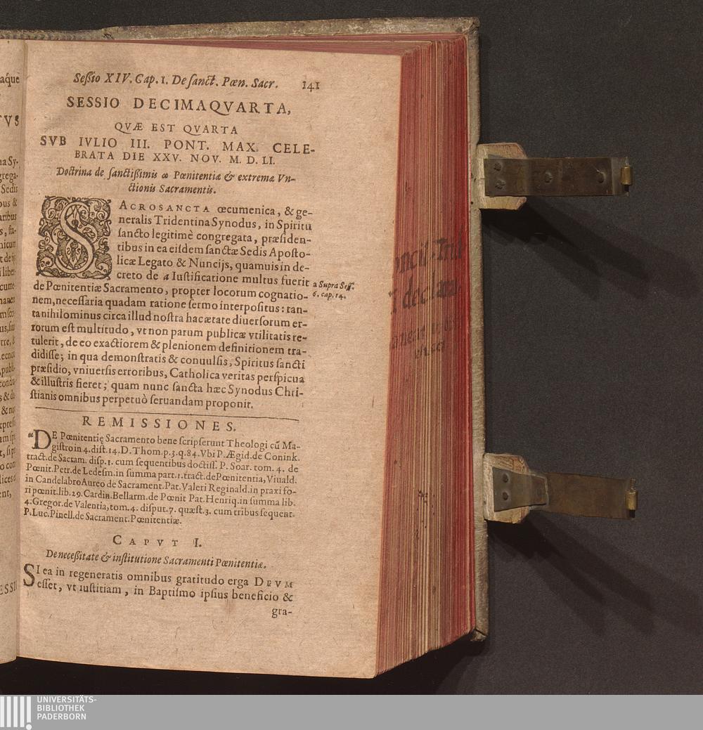 Sacros. Concilii Tridentini Canones Et Decreta : Item Declarationes Cardinalivm Concilii Interpretvm / Ex Vltima recognitione Ioan. Gallemart. Quibus iam primùm accesserunt, non editæ etiam quædam hactenus, aut indigestæ; nunc ad sedes suas reductæ; Cvm Citationibvs Ioannis Sotealli Theol. & Horatij Lucij IC.ti: nec non Remissionibvs P. Augustini Barbosa , ...