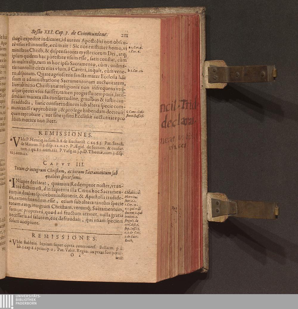 Sacros. Concilii Tridentini Canones Et Decreta : Item Declarationes Cardinalivm Concilii Interpretvm / Ex Vltima recognitione Ioan. Gallemart. Quibus iam primùm accesserunt, non editæ etiam quædam hactenus, aut indigestæ; nunc ad sedes suas reductæ; Cvm Citationibvs Ioannis Sotealli Theol. & Horatij Lucij IC.ti: nec non Remissionibvs P. Augustini Barbosa , ...