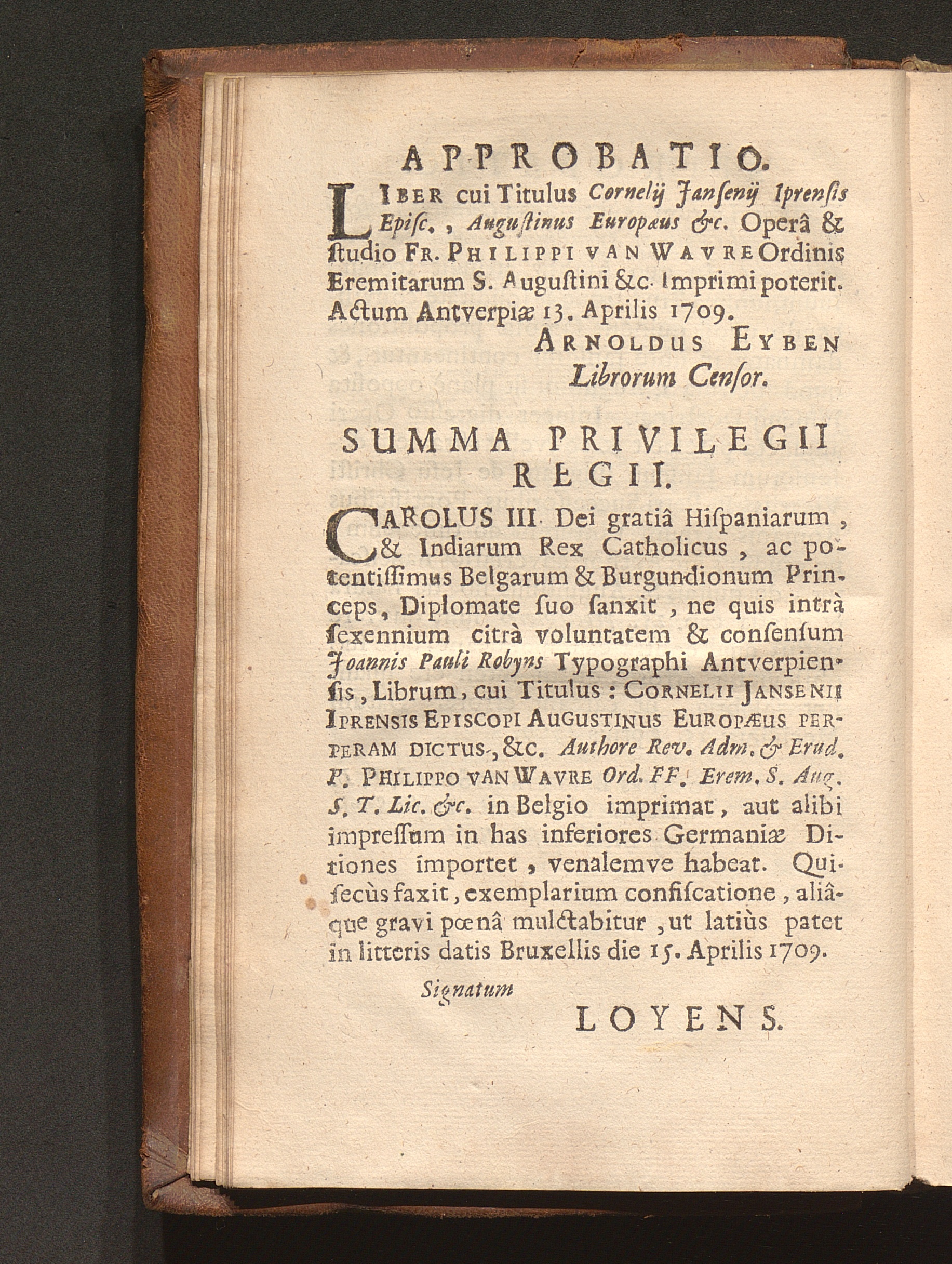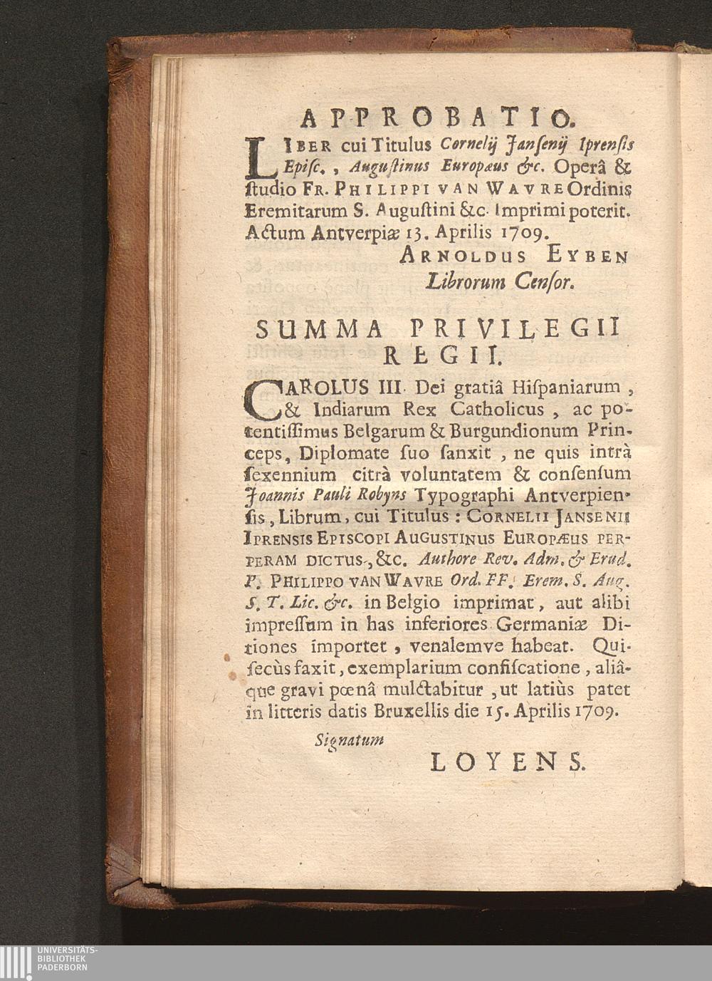 Cornelii Jansenii Iprensis Episcopi Augustinus Europaeus Perperam Dictus : In ferali Famosarum suarum Pentade per Augustinum Verum Maximum Ecclesiae Doctorem (Salvâ Gratiâ Christi per se efficiente) Triumphatus, damnatus, priusquam natus, atque Apostolico fulmine ictus / Opera Ac Studio Fr. Philippi van Wavre Ordinis Eremitarum S. Augustini Sacrae Theologiae Licentiati & Provinciae Flandro-Belgicae Diffinitoris