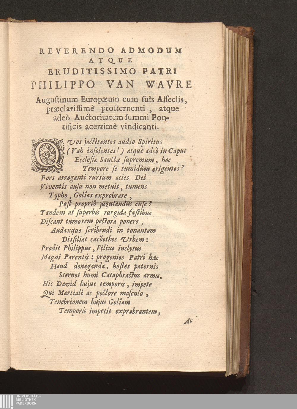 Cornelii Jansenii Iprensis Episcopi Augustinus Europaeus Perperam Dictus : In ferali Famosarum suarum Pentade per Augustinum Verum Maximum Ecclesiae Doctorem (Salvâ Gratiâ Christi per se efficiente) Triumphatus, damnatus, priusquam natus, atque Apostolico fulmine ictus / Opera Ac Studio Fr. Philippi van Wavre Ordinis Eremitarum S. Augustini Sacrae Theologiae Licentiati & Provinciae Flandro-Belgicae Diffinitoris
