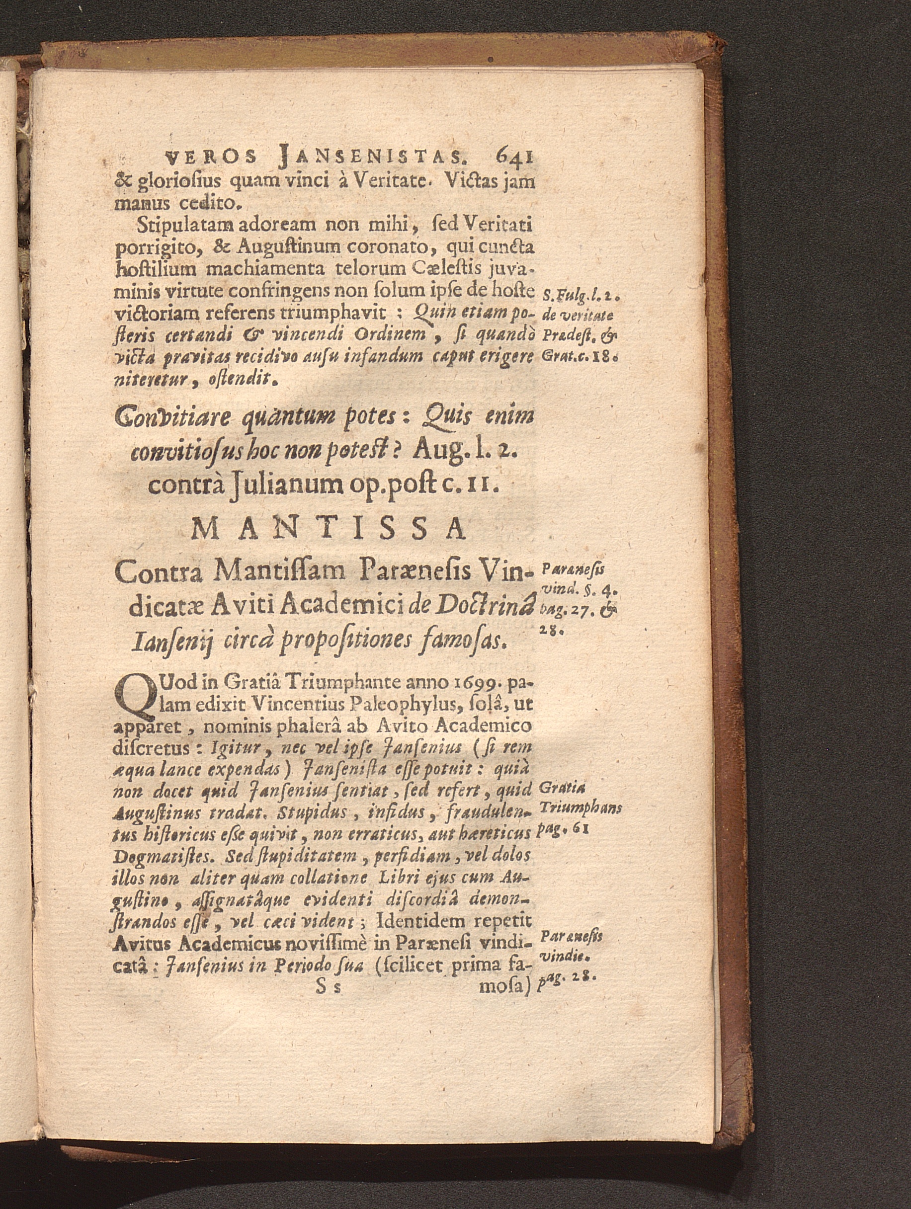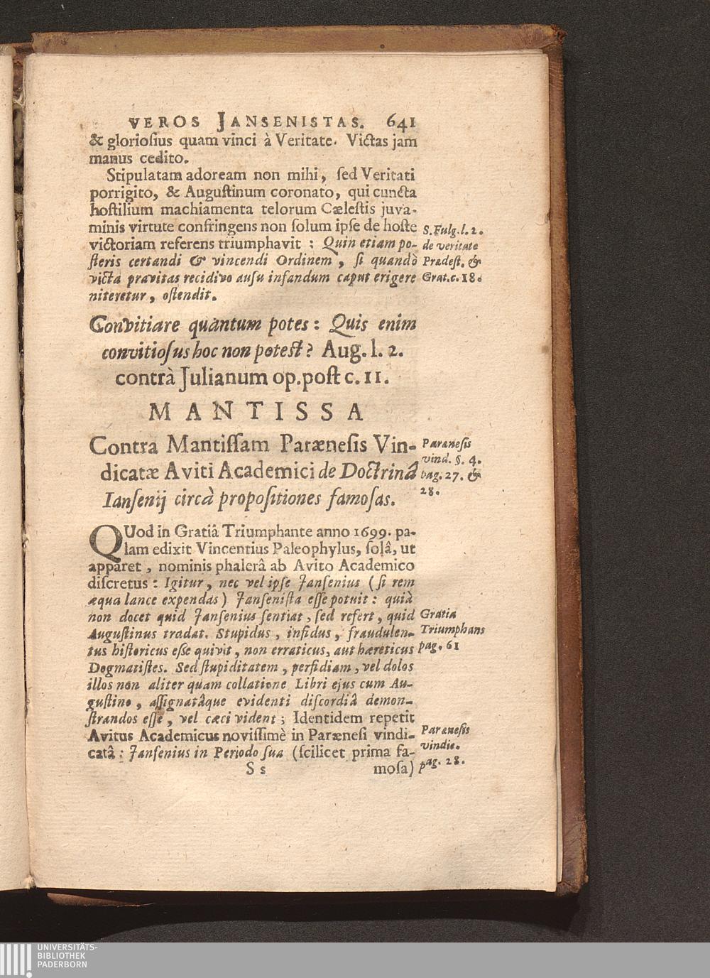 Cornelii Jansenii Iprensis Episcopi Augustinus Europaeus Perperam Dictus : In ferali Famosarum suarum Pentade per Augustinum Verum Maximum Ecclesiae Doctorem (Salvâ Gratiâ Christi per se efficiente) Triumphatus, damnatus, priusquam natus, atque Apostolico fulmine ictus / Opera Ac Studio Fr. Philippi van Wavre Ordinis Eremitarum S. Augustini Sacrae Theologiae Licentiati & Provinciae Flandro-Belgicae Diffinitoris