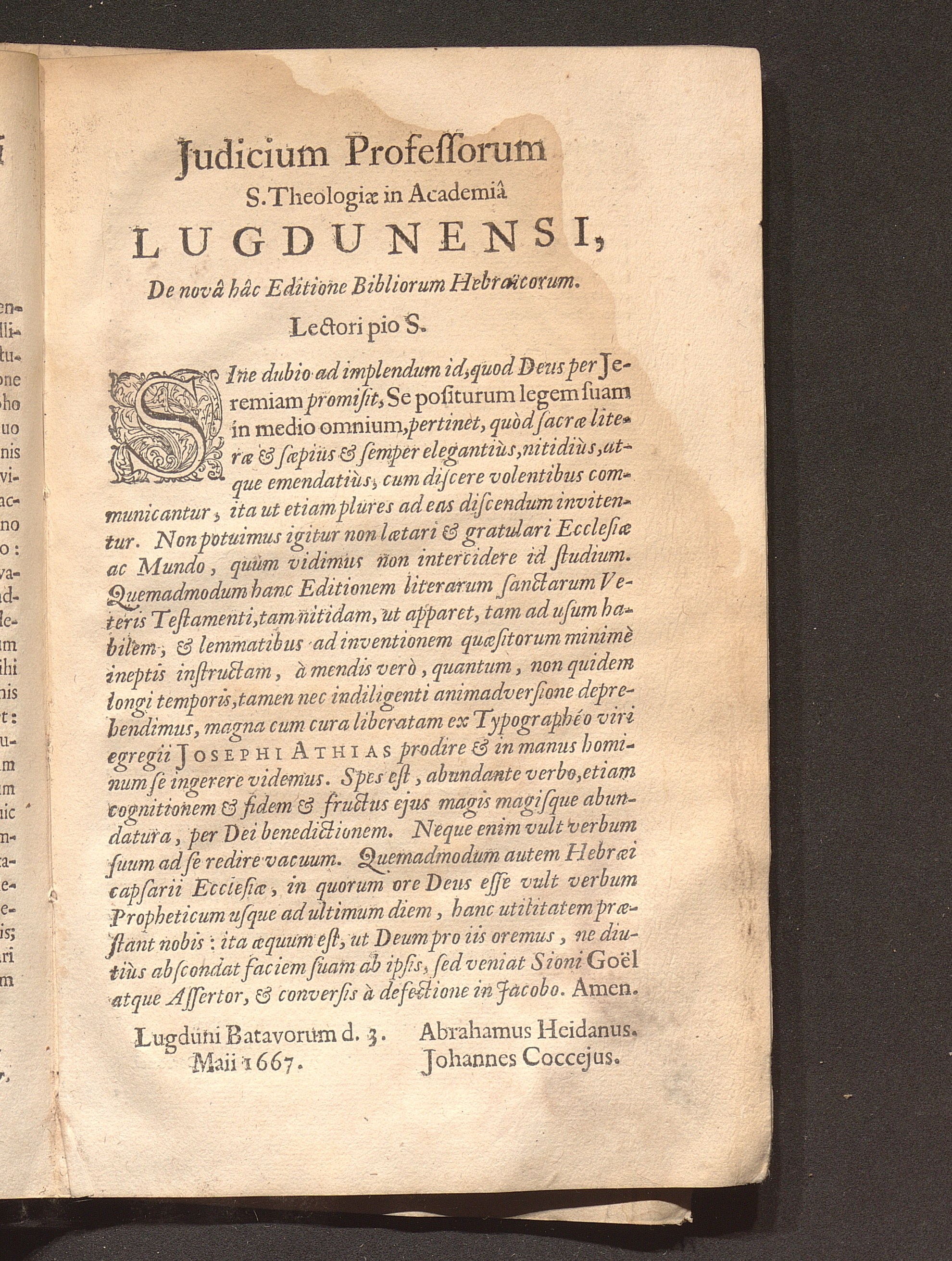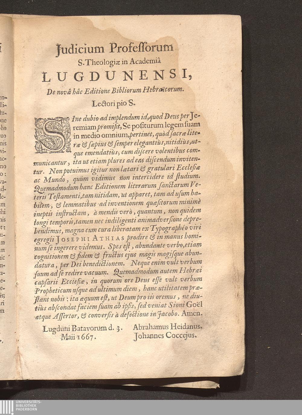 Judicium Professorum S. Theologiæ in Academiâ Lugdunensi, De novâ hâc Editione Bibliorum[...]