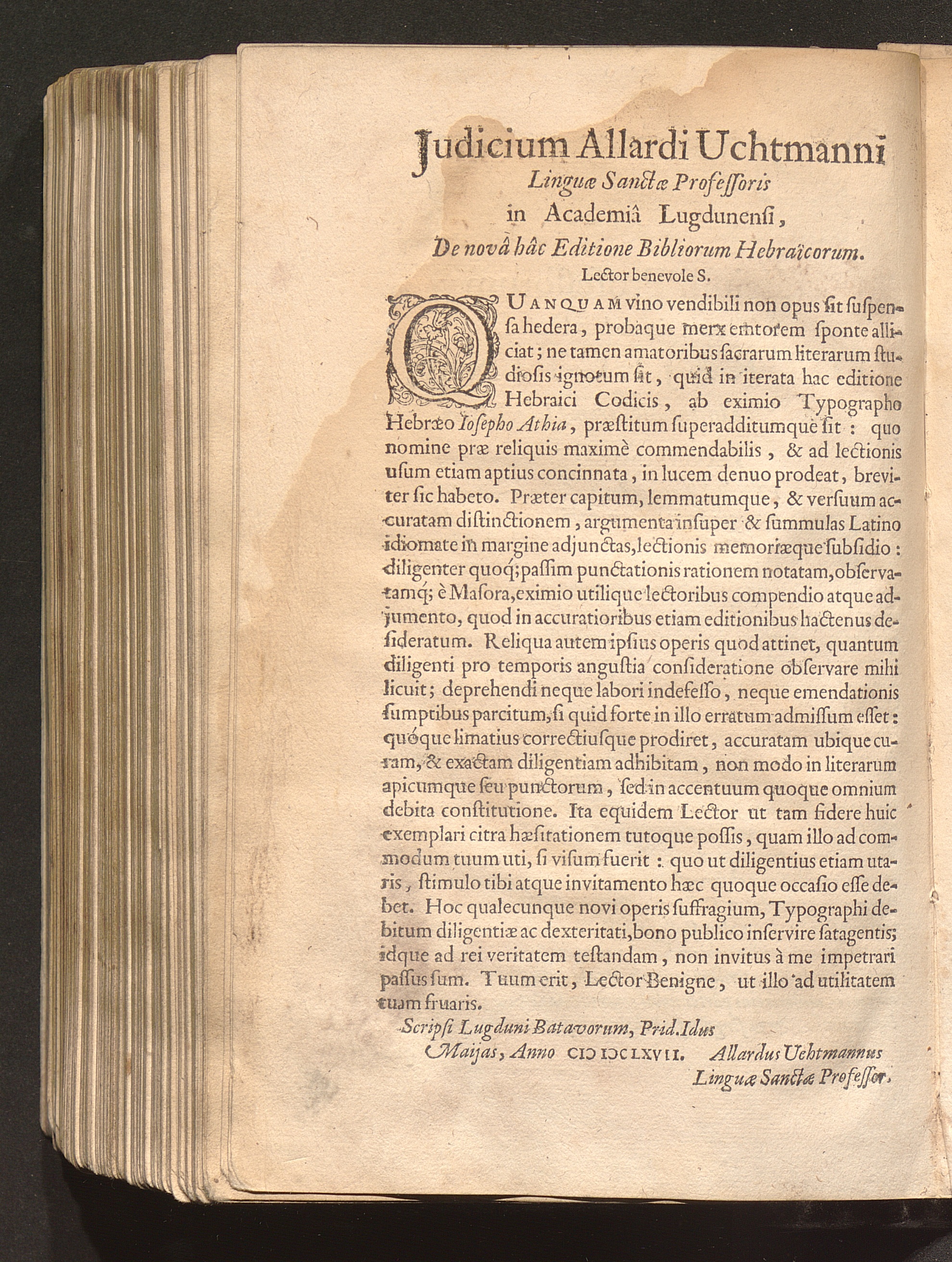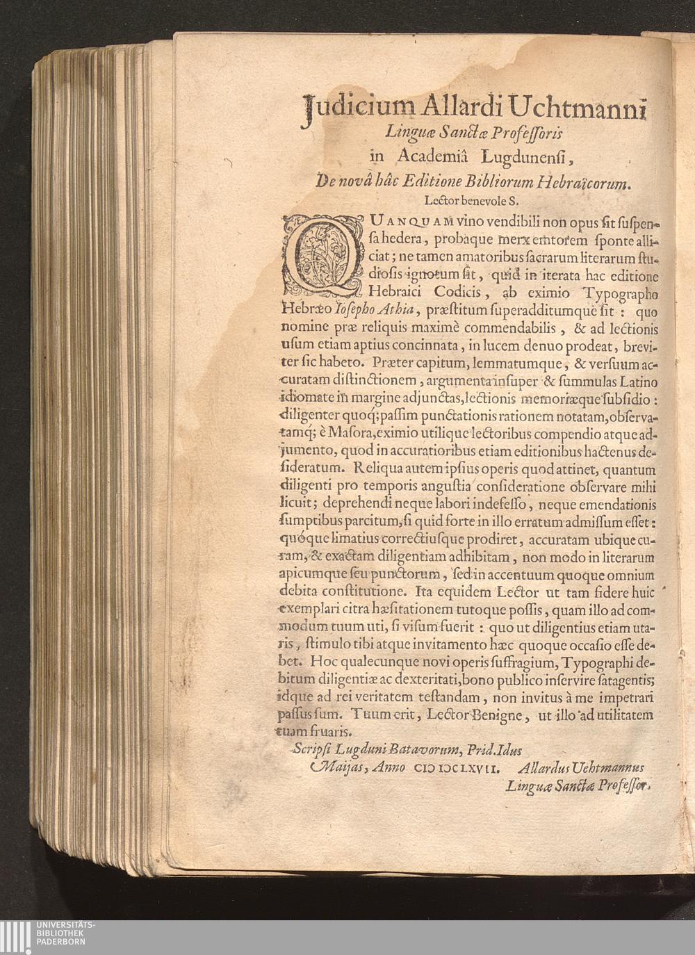 Judicium Allardi Uchtmanni Linguæ Sanctæ Professoris in Academiâ Lugdunensi, De novâ[...]