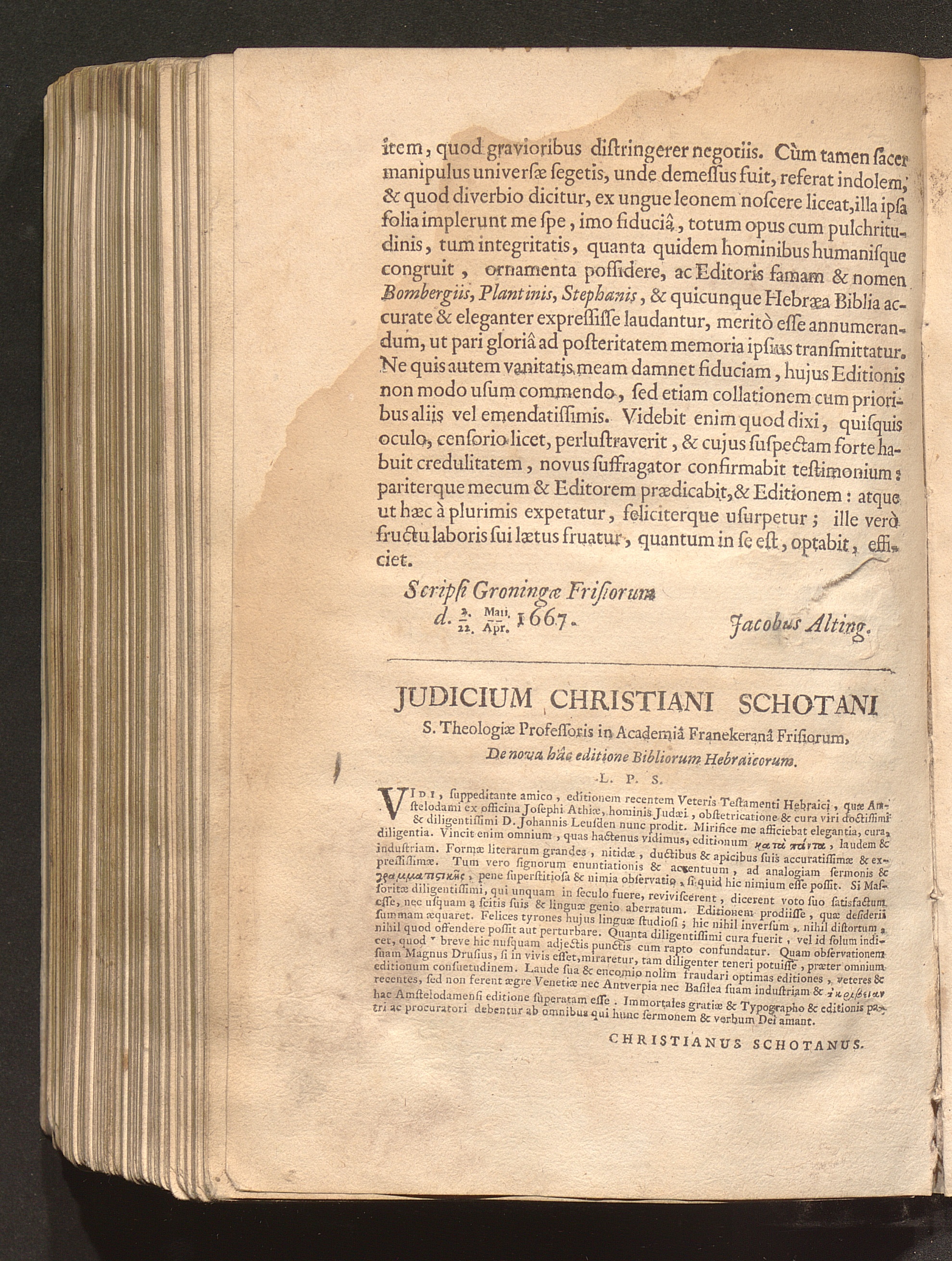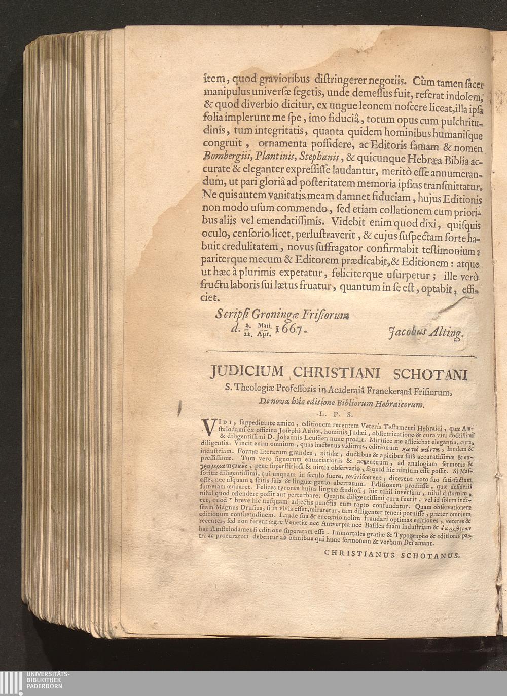 Judicium Christiani Schotani S. Theologiæ Professoris in Academiâ Franekeranâ Frisiorum,[...]