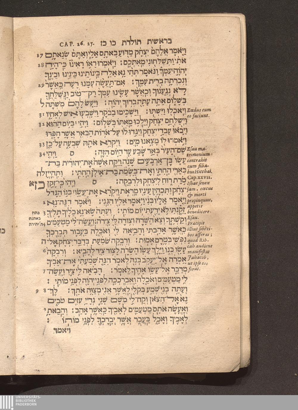 Liber Genesis. Hebraice Beresith. Id Est, In Principio.