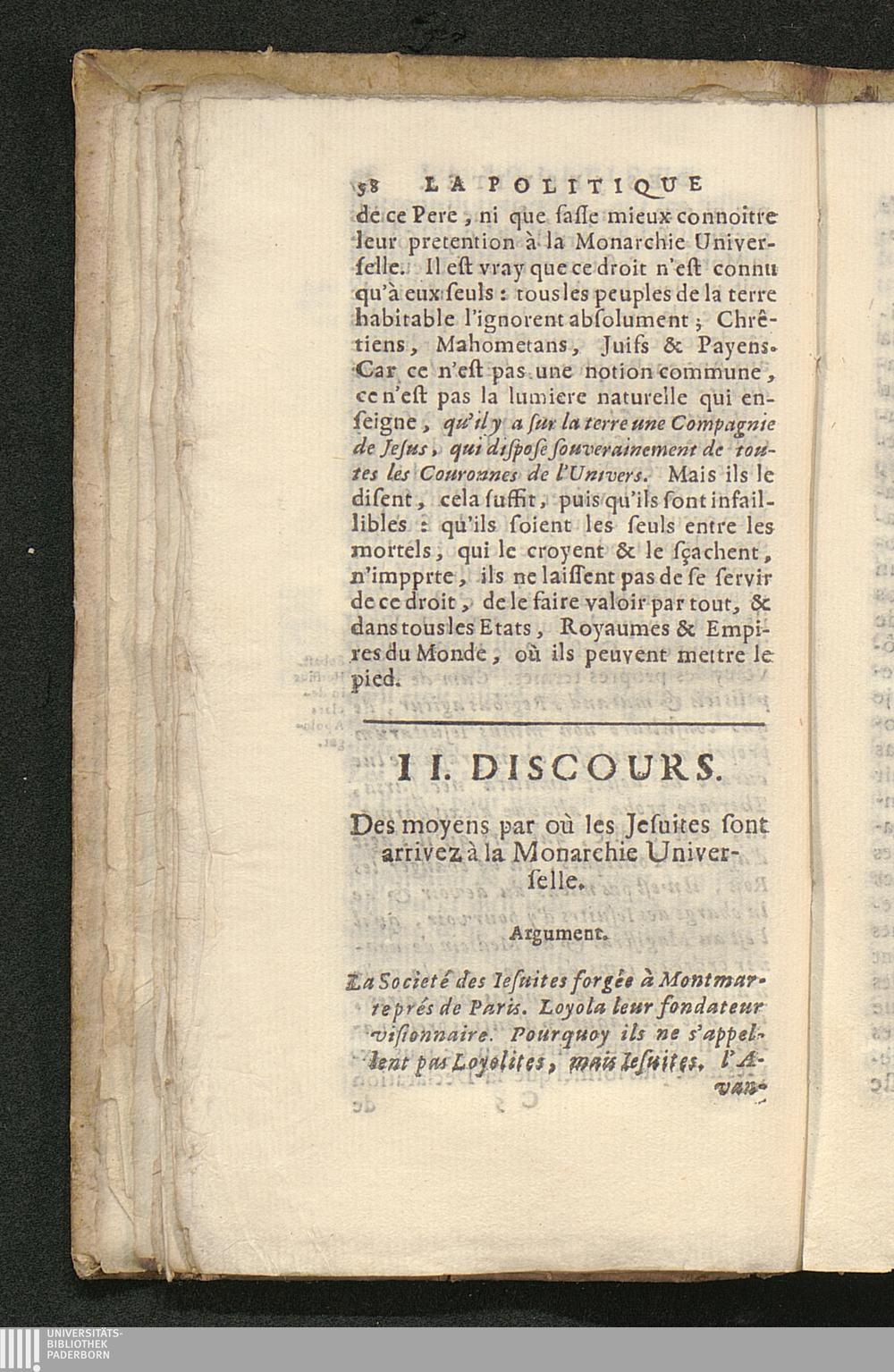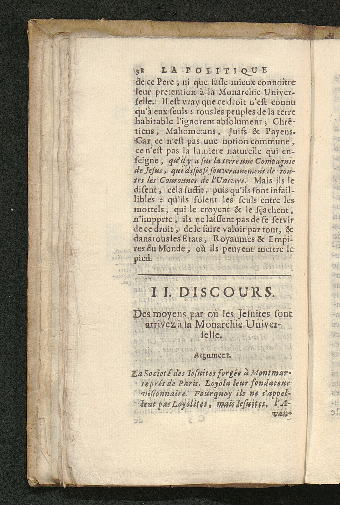 II. Discours. Des moyens par où les Jesuites sont arrivez à la Monarchie Univers[...]