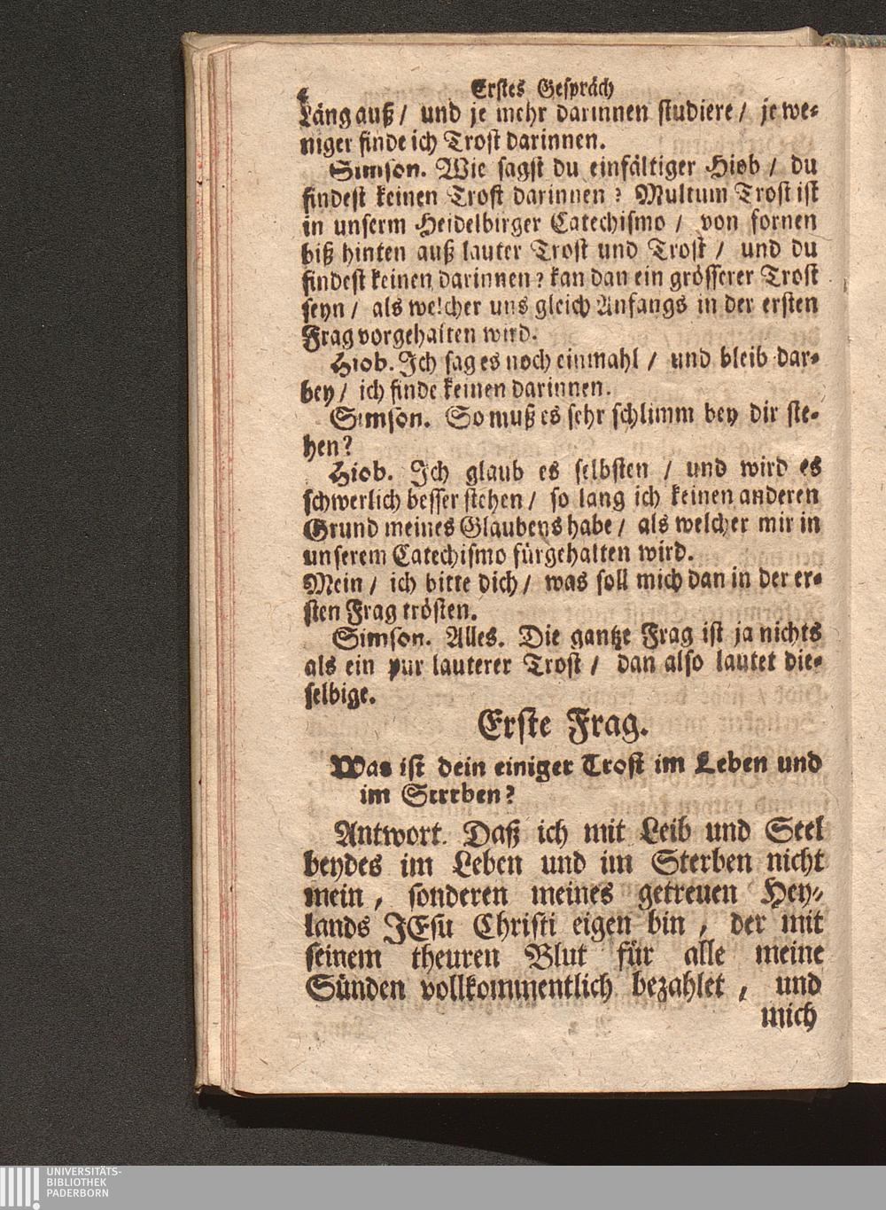 Vier verschiedene Zwischen zweyen Reformirten Bürgern Hiob Und Simson Angestellte Discourse Uber den so genanten Reformirten Heidelberger Catechismum, : Jn welchen Alle in demselben enthaltene 129. Fragen abgehandelt, Und was in einer jeglichen insonderheit zu mercken/ Auff das deutlichste erkläret wird / [Georg Kauffmann]