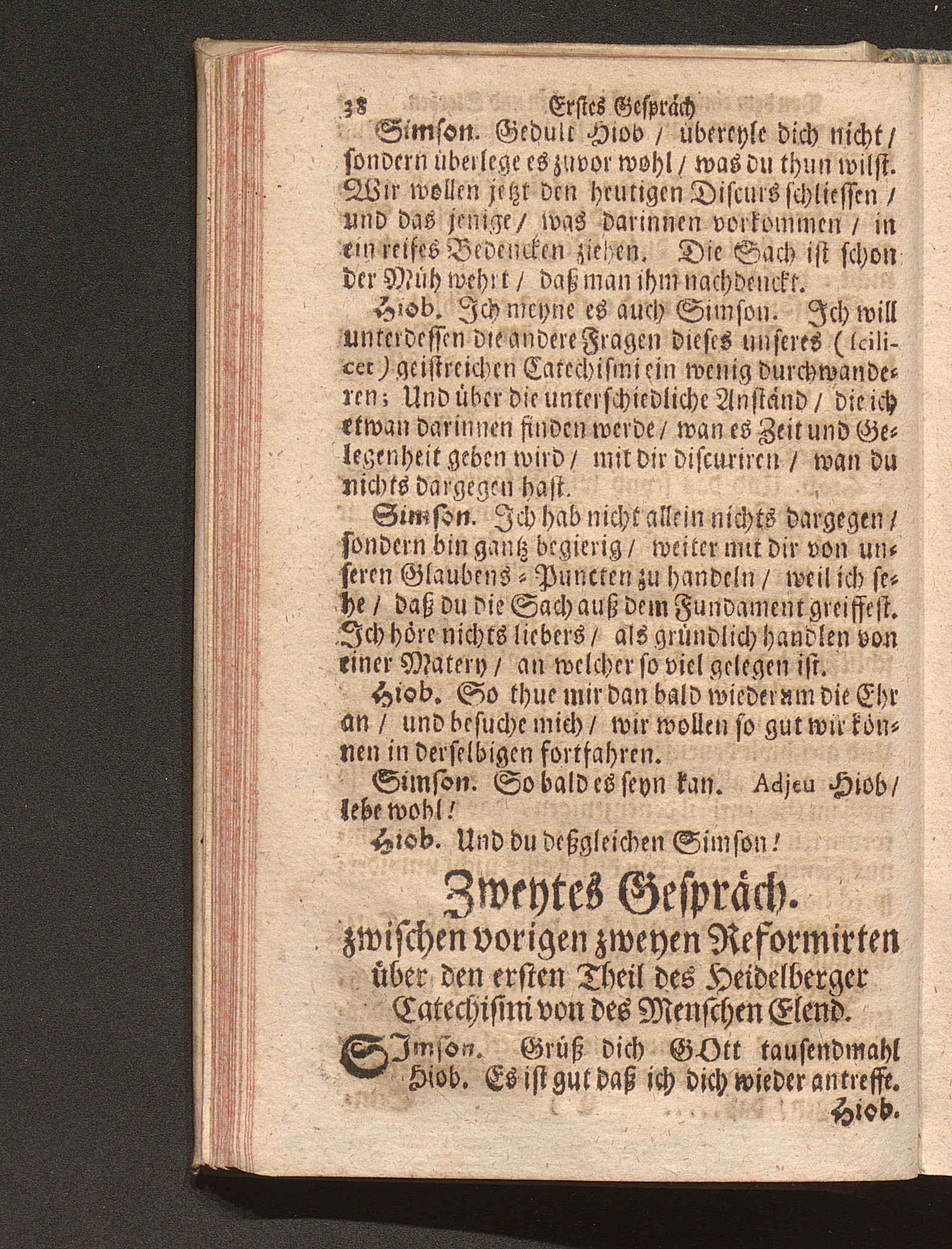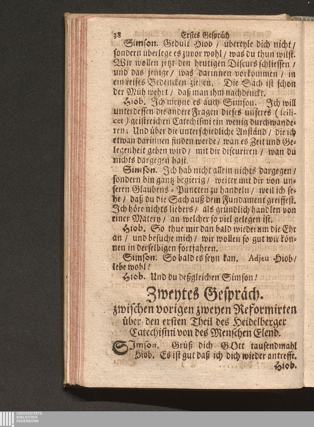 Vier verschiedene Zwischen zweyen Reformirten Bürgern Hiob Und Simson Angestellte Discourse Uber den so genanten Reformirten Heidelberger Catechismum, : Jn welchen Alle in demselben enthaltene 129. Fragen abgehandelt, Und was in einer jeglichen insonderheit zu mercken/ Auff das deutlichste erkläret wird / [Georg Kauffmann]