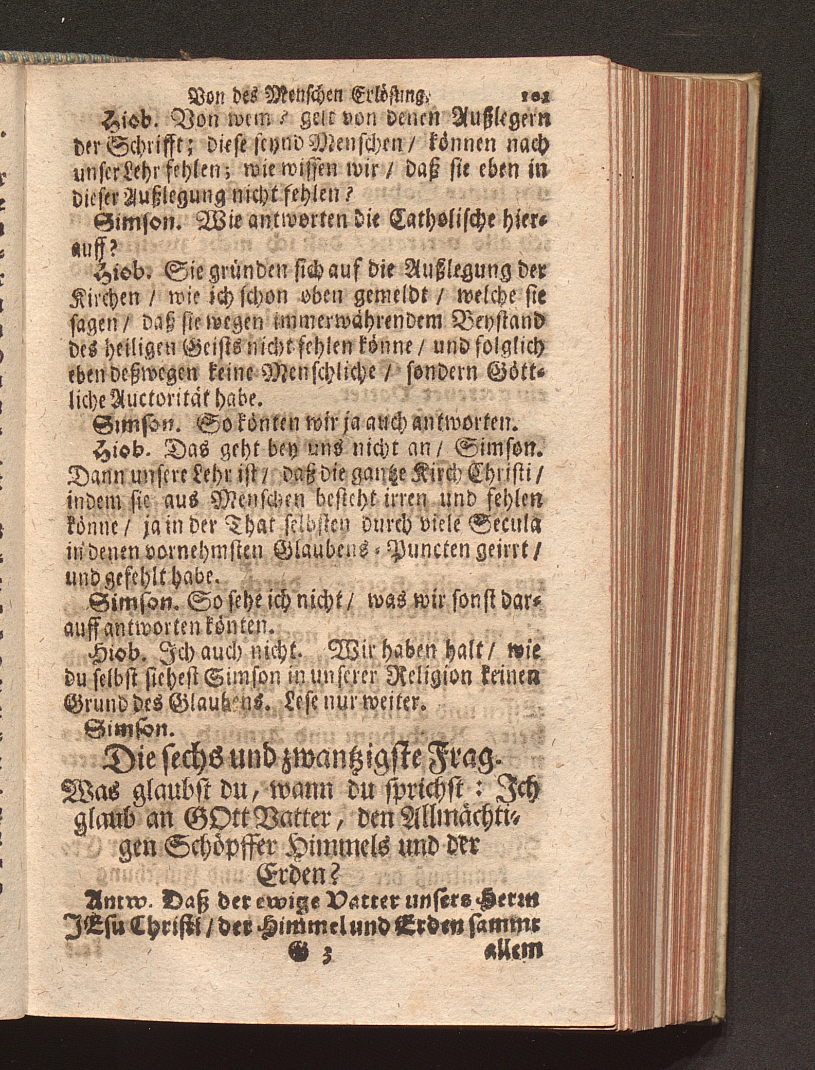 Vier verschiedene Zwischen zweyen Reformirten Bürgern Hiob Und Simson Angestellte Discourse Uber den so genanten Reformirten Heidelberger Catechismum, : Jn welchen Alle in demselben enthaltene 129. Fragen abgehandelt, Und was in einer jeglichen insonderheit zu mercken/ Auff das deutlichste erkläret wird / [Georg Kauffmann]