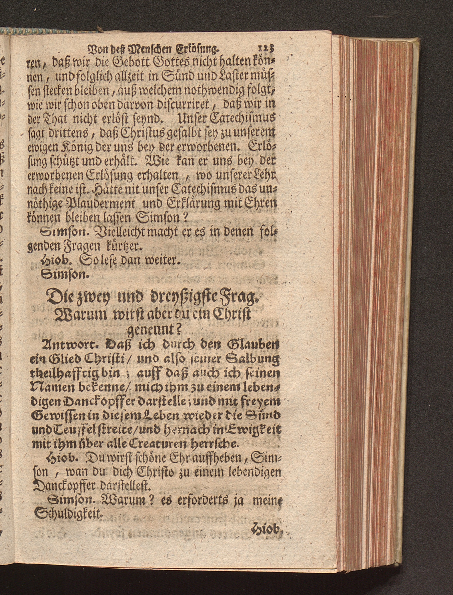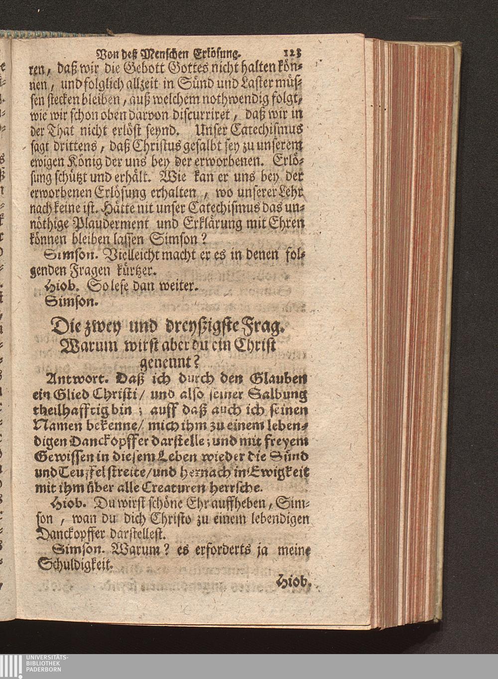 Vier verschiedene Zwischen zweyen Reformirten Bürgern Hiob Und Simson Angestellte Discourse Uber den so genanten Reformirten Heidelberger Catechismum, : Jn welchen Alle in demselben enthaltene 129. Fragen abgehandelt, Und was in einer jeglichen insonderheit zu mercken/ Auff das deutlichste erkläret wird / [Georg Kauffmann]