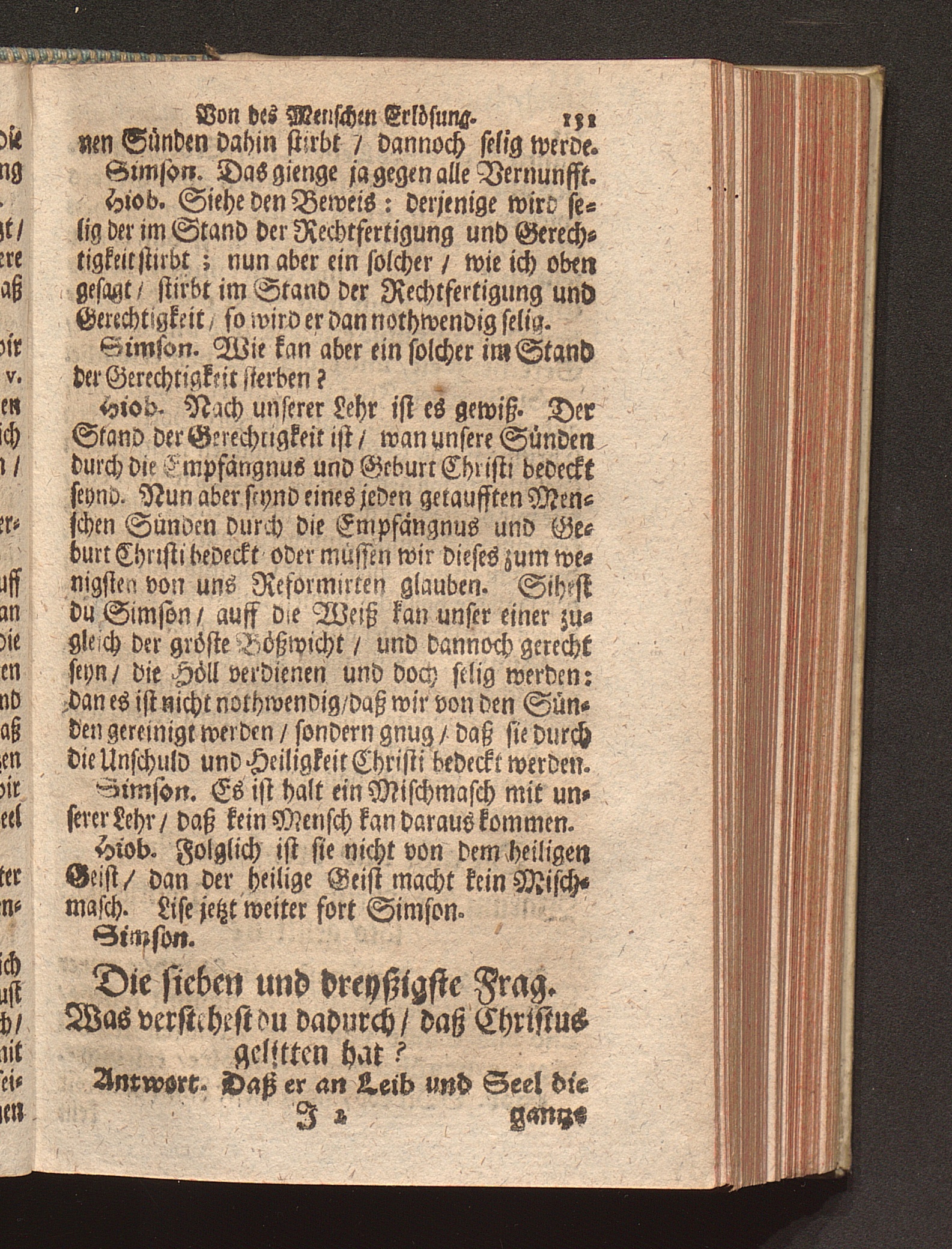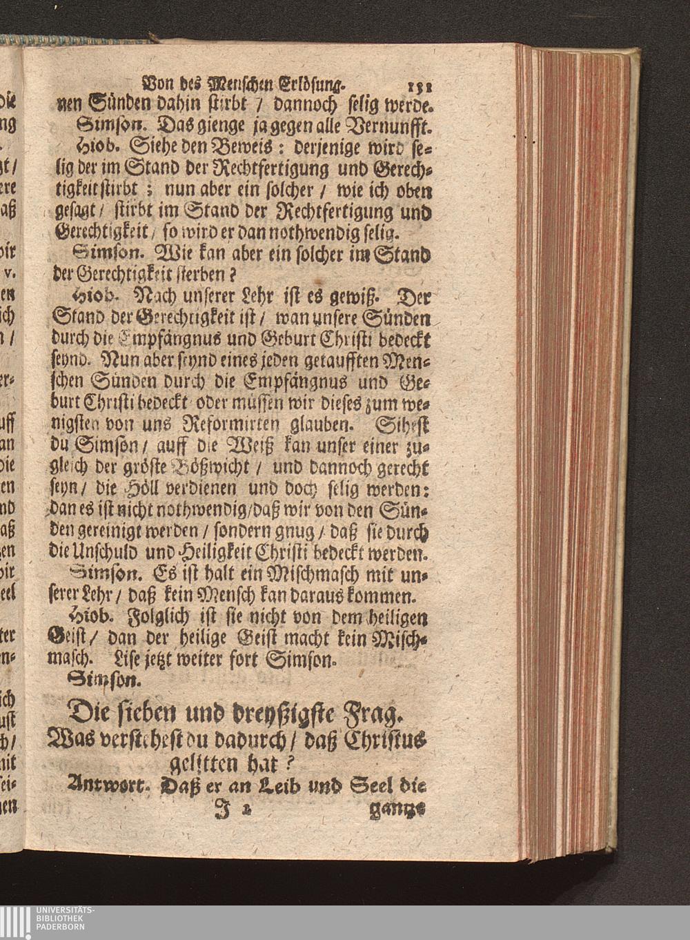 Vier verschiedene Zwischen zweyen Reformirten Bürgern Hiob Und Simson Angestellte Discourse Uber den so genanten Reformirten Heidelberger Catechismum, : Jn welchen Alle in demselben enthaltene 129. Fragen abgehandelt, Und was in einer jeglichen insonderheit zu mercken/ Auff das deutlichste erkläret wird / [Georg Kauffmann]